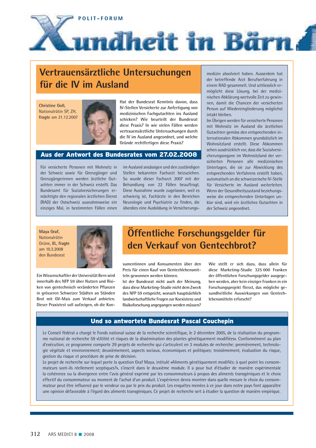 Christine Goll, Nationalrätin SP, ZH, fragte am 21.12.2007