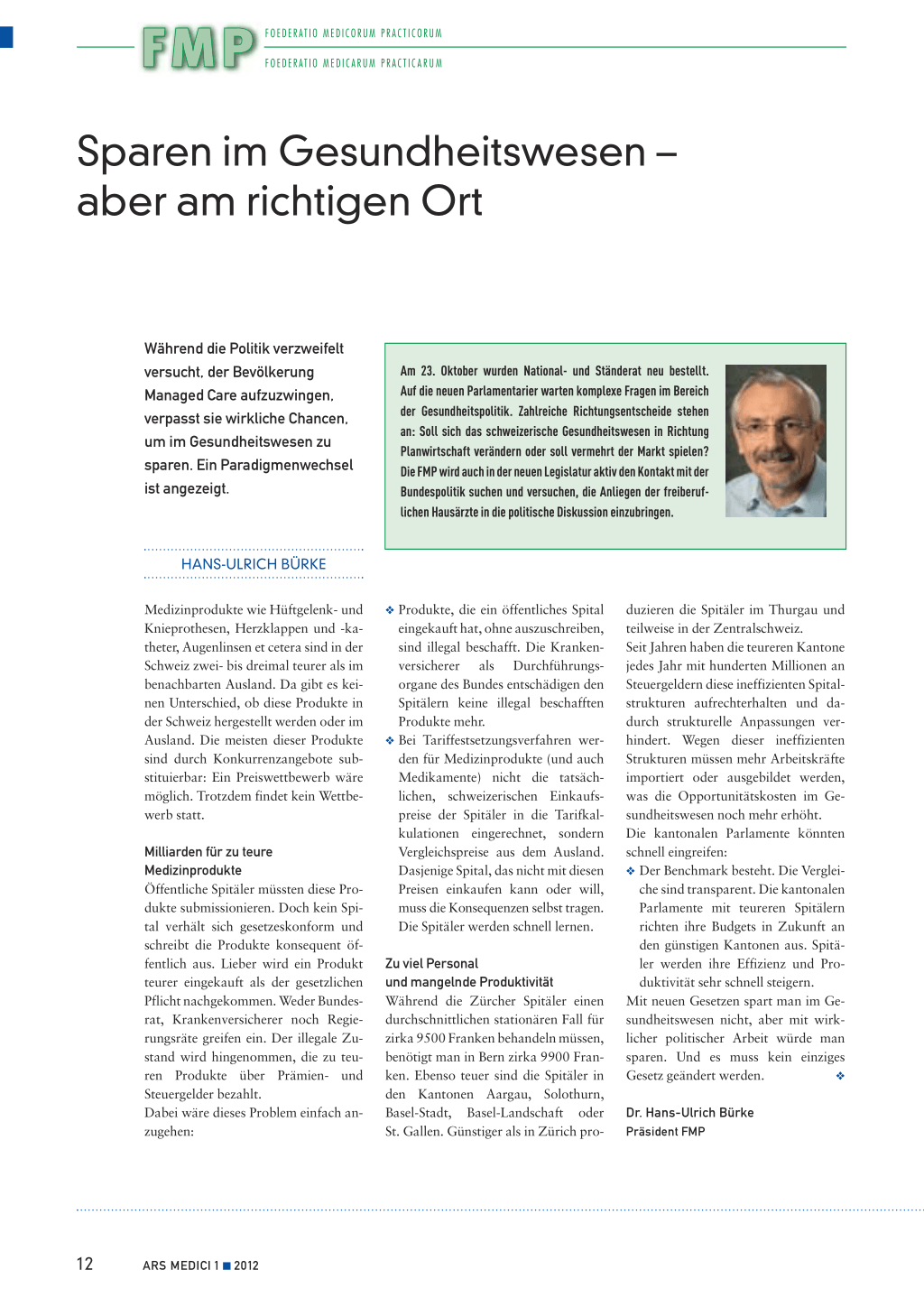 Dr. Hans-Ulrich Bürke Präsident FMP