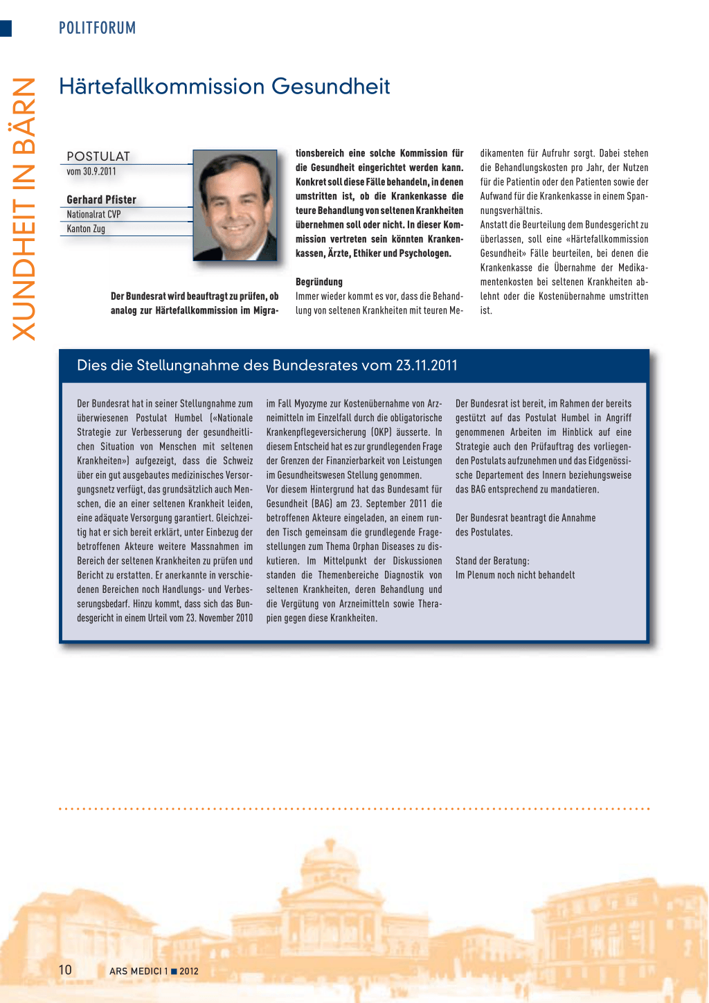 POSTULAT vom 30.9.2011 Gerhard Pfister Nationalrat CVP Kanton Zug
