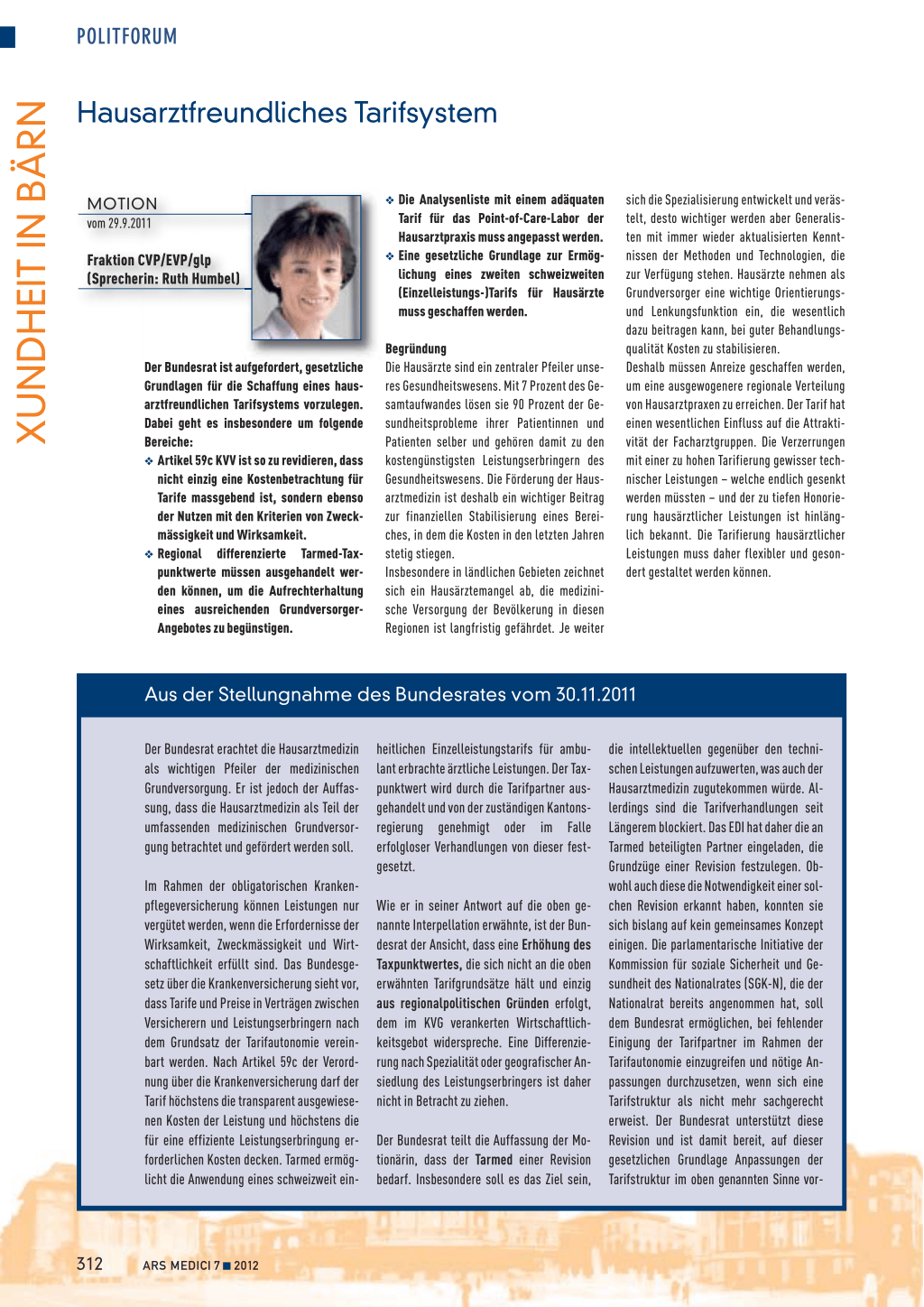 Weitere wichtige Arbeiten zur Aufwertung der Grundversorgung wurden unternommen: In seiner Sitzung vom 16. September 2011 hat der Bundesrat den direkten Gegenentwurf zur Volksinitiative «Ja zur Hausarzt-