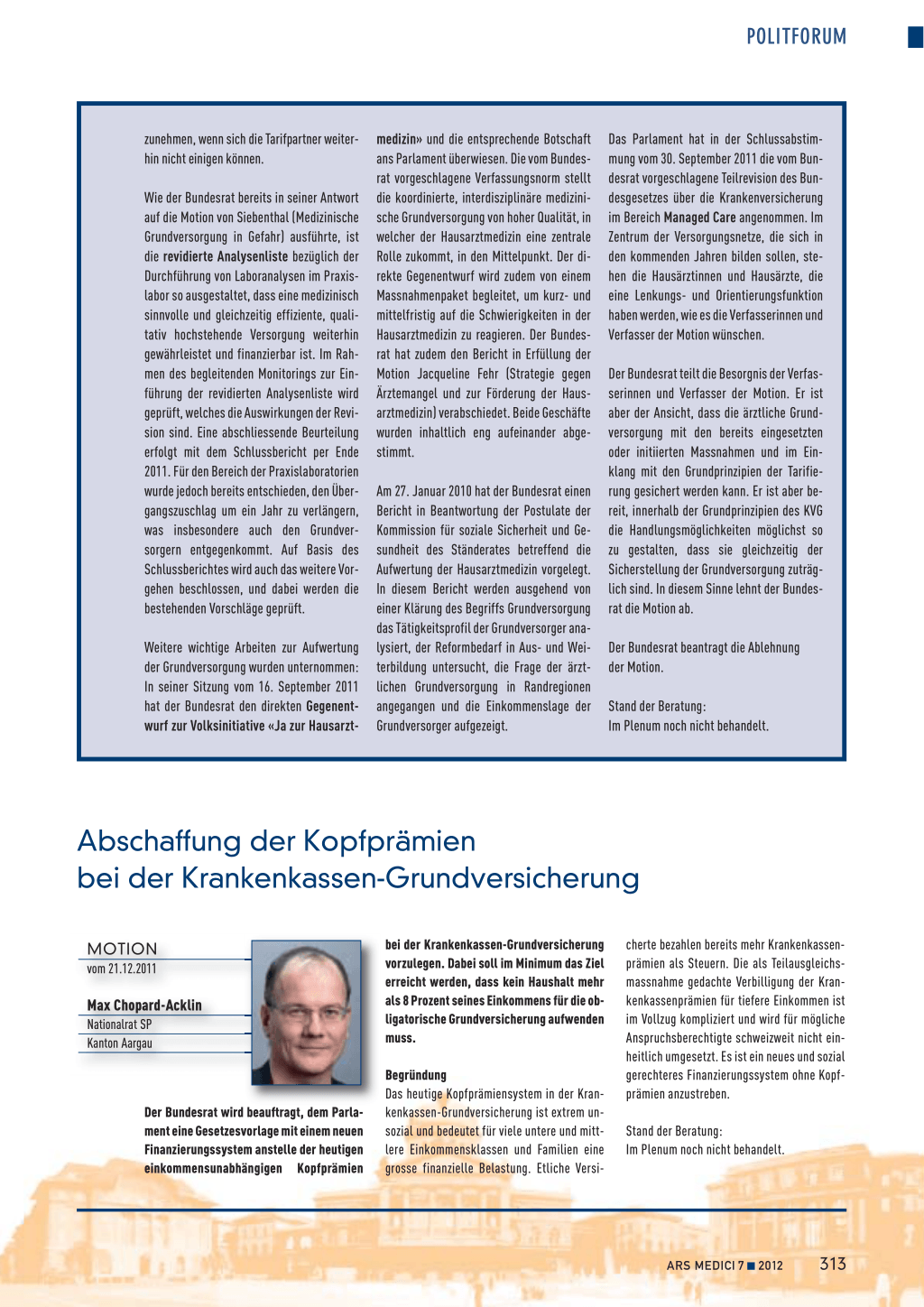 medizin» und die entsprechende Botschaft ans Parlament überwiesen. Die vom Bundesrat vorgeschlagene Verfassungsnorm stellt die koordinierte, interdisziplinäre medizinische Grundversorgung von hoher Qualität, in welcher der Hausarztmedizin eine zentrale Rolle zukommt, in den Mittelpunkt. Der direkte Gegenentwurf wird zudem von einem Massnahmenpaket begleitet, um kurz- und mittelfristig auf die Schwierigkeiten in der Hausarztmedizin zu reagieren. Der Bundesrat hat zudem den Bericht in Erfüllung der Motion Jacqueline Fehr (Strategie gegen Ärztemangel und zur Förderung der Hausarztmedizin) verabschiedet. Beide Geschäfte wurden inhaltlich eng aufeinander abgestimmt.