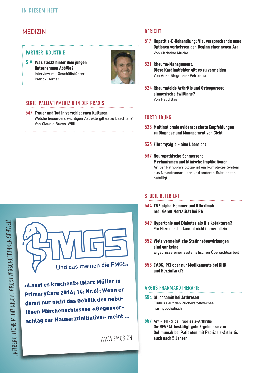Und das meinen die FMGS: «Lasst es krachen!» (Marc Müller in PrimaryCare 2014; 14: Nr.6): Wenn er damit nur nicht das Gebälk des nebulösen Märchenschlosses «Gegenvorschlag zur Hausarztinitiative» meint …