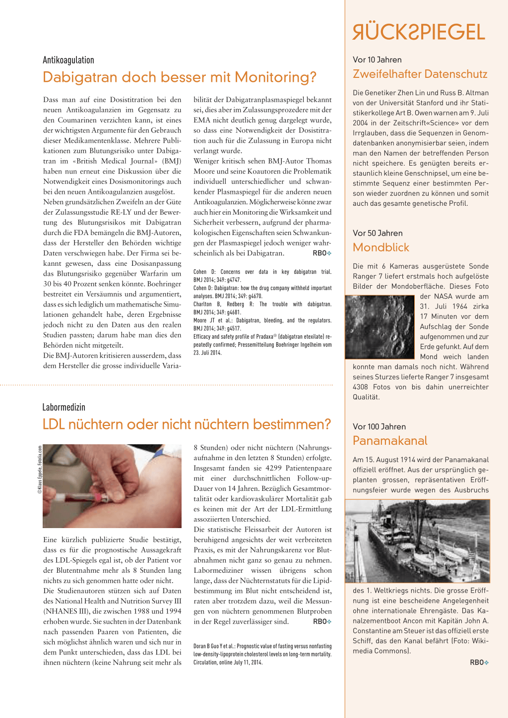 Cohen D: Concerns over data in key dabigatran trial. BMJ 2014; 349: g4747. Cohen D: Dabigatran: how the drug company withheld important analyses. BMJ 2014; 349: g4670. Charlton B, Redberg R: The trouble with dabigatran. BMJ 2014; 349: g4681. Moore JT et al.: Dabigatran, bleeding, and the regulators. BMJ 2014; 349: g4517. Efficacy and safety profile of Pradaxa® (dabigatran etexilate) repeatedly confirmed; Pressemitteilung Boehringer Ingelheim vom 23. Juli 2014.
