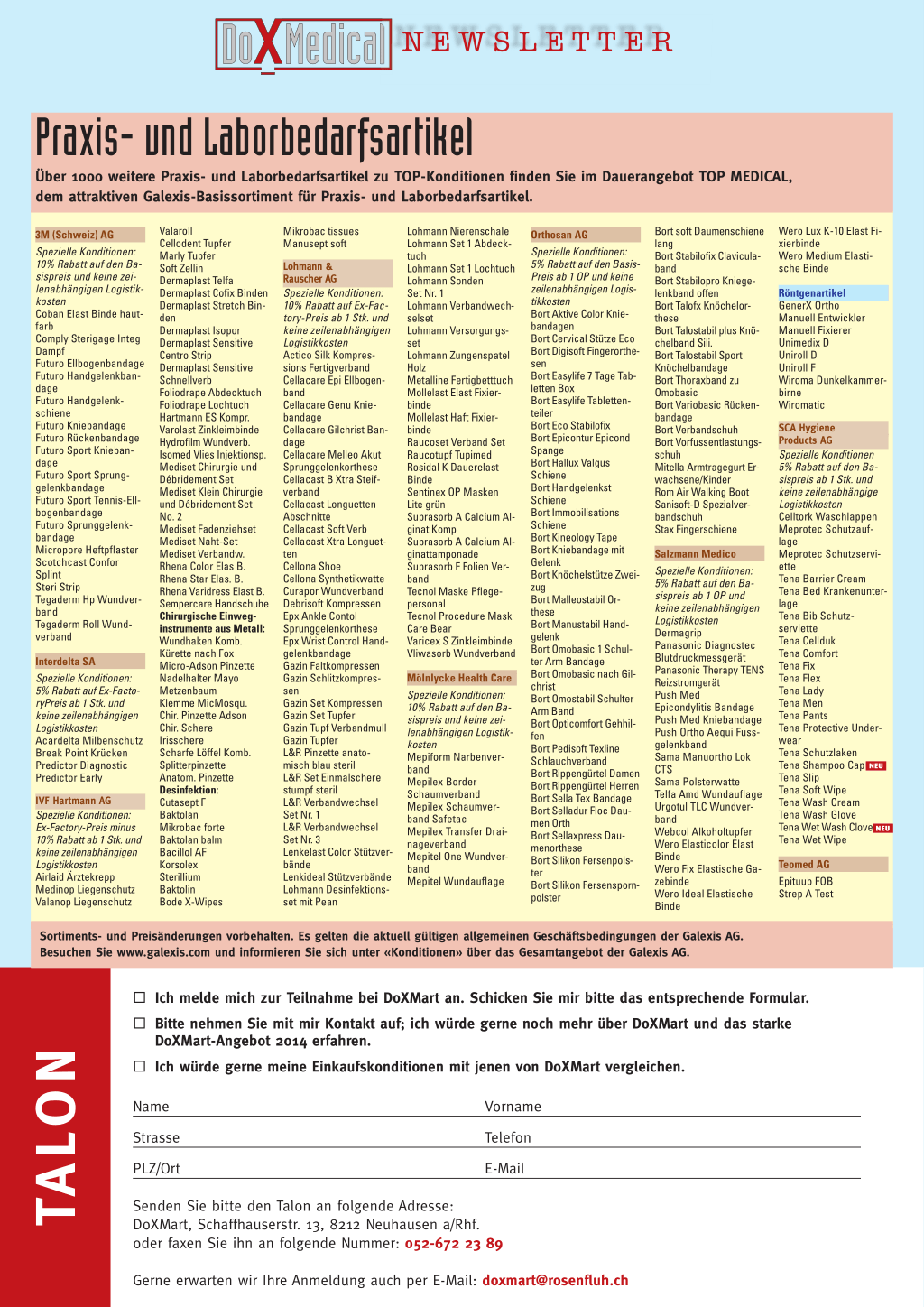 Senden Sie bitte den Talon an folgende Adresse: DoXMart, Schaffhauserstr. 13, 8212 Neuhausen a/Rhf. oder faxen Sie ihn an folgende Nummer: 052-672 23 89