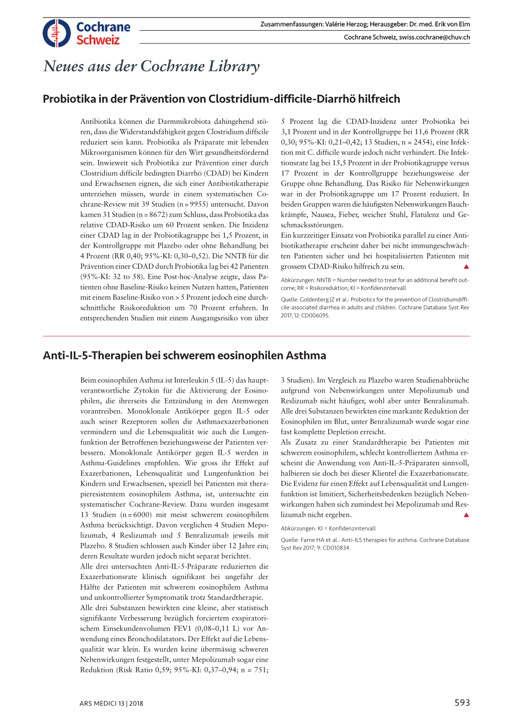 Zusammenfassungen: Valérie Herzog; Herausgeber: Dr. med. Erik von Elm Cochrane Schweiz, swiss.cochrane@chuv.ch