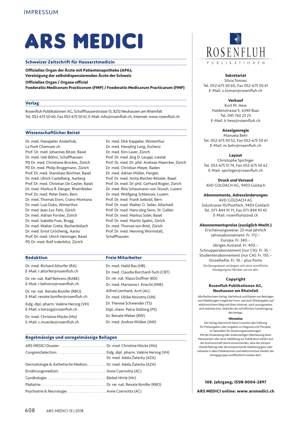 ARS MEDICI Dossier: . . . . . . . . . . . . . . . . . . . . . . . . Dr. med. Christine Mücke (Mü) CongressSelection: . . . . . . . . . . . . . . . . . . . . . . . . . Eidg. dipl. pharm. Valérie Herzog (VH)