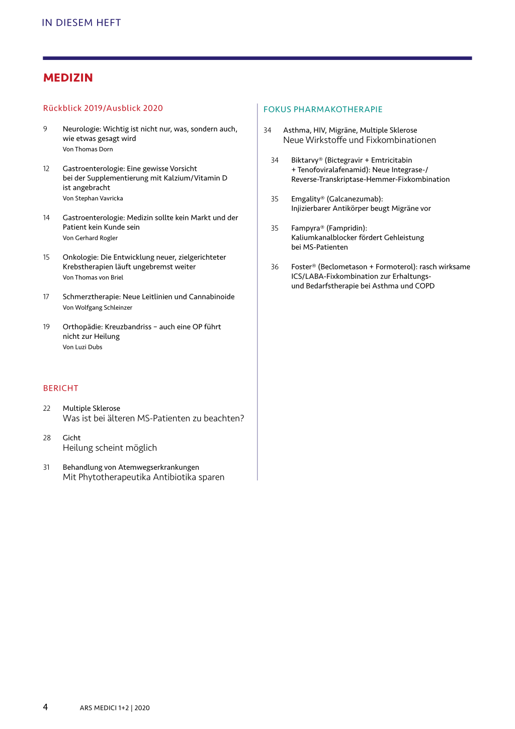 BERICHT 22 Multiple Sklerose Was ist bei älteren MS-Patienten zu beachten? 28 Gicht Heilung scheint möglich 31 Behandlung von Atemwegserkrankungen Mit Phytotherapeutika Antibiotika sparen