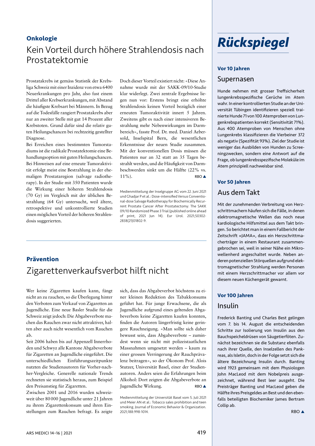 Medienmitteilung der Inselgruppe AG vom 22. Juni 2021 und Ghadjar P et al.: Dose-intensified Versus Conventional-dose Salvage Radiotherapy for Biochemically Recurrent Prostate Cancer After Prostatectomy: The SAKK 09/10 Randomized Phase 3 Trial (published online ahead of print, 2021 Jun 14). Eur Urol. 2021;S03022838(21)01802-9.