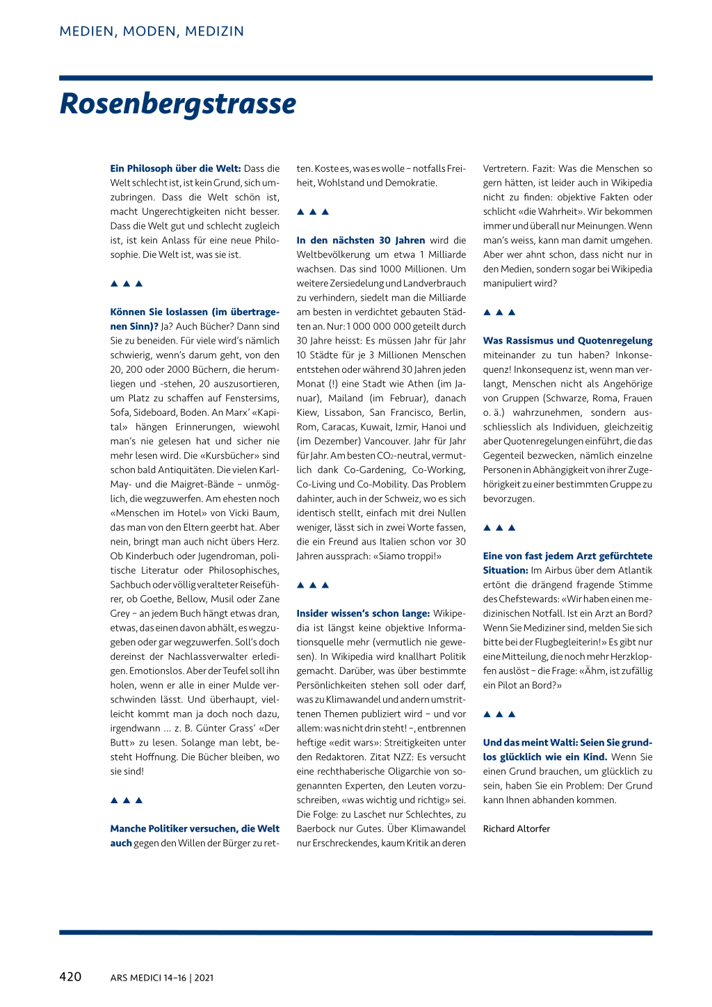 Vertretern. Fazit: Was die Menschen so gern hätten, ist leider auch in Wikipedia nicht zu finden: objektive Fakten oder schlicht «die Wahrheit». Wir bekommen immer und überall nur Meinungen. Wenn man’s weiss, kann man damit umgehen. Aber wer ahnt schon, dass nicht nur in den Medien, sondern sogar bei Wikipedia manipuliert wird?