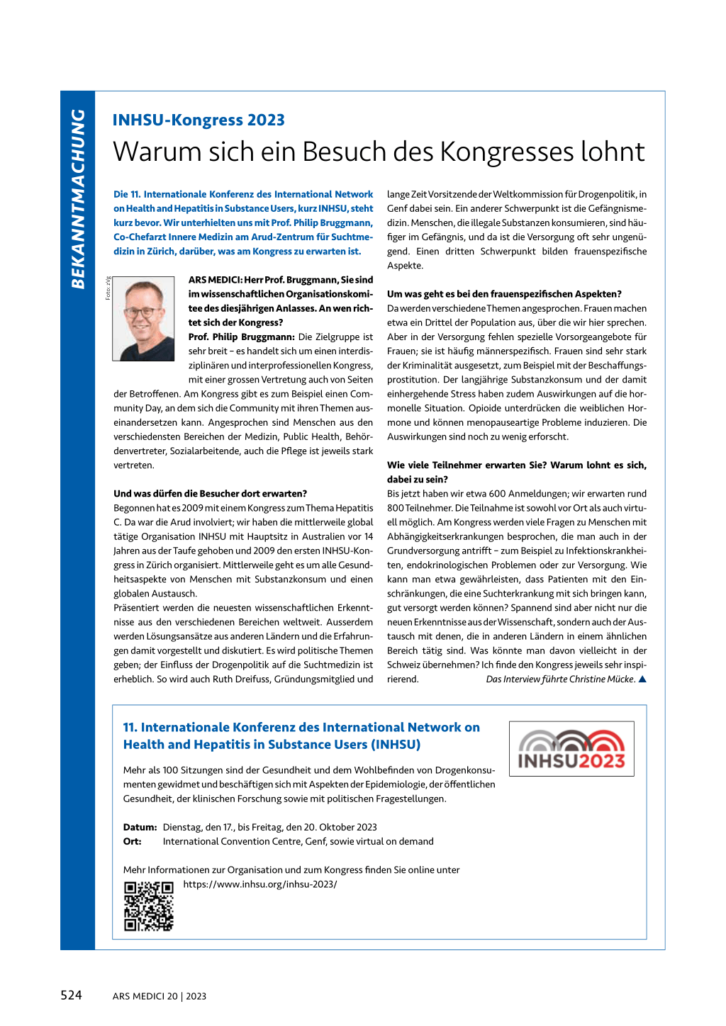 Die 11. Internationale Konferenz des International Network on Health and Hepatitis in Substance Users, kurz INHSU, steht kurz bevor. Wir unterhielten uns mit Prof. Philip Bruggmann, Co-Chefarzt Innere Medizin am Arud-Zentrum für Suchtmedizin in Zürich, darüber, was am Kongress zu erwarten ist.