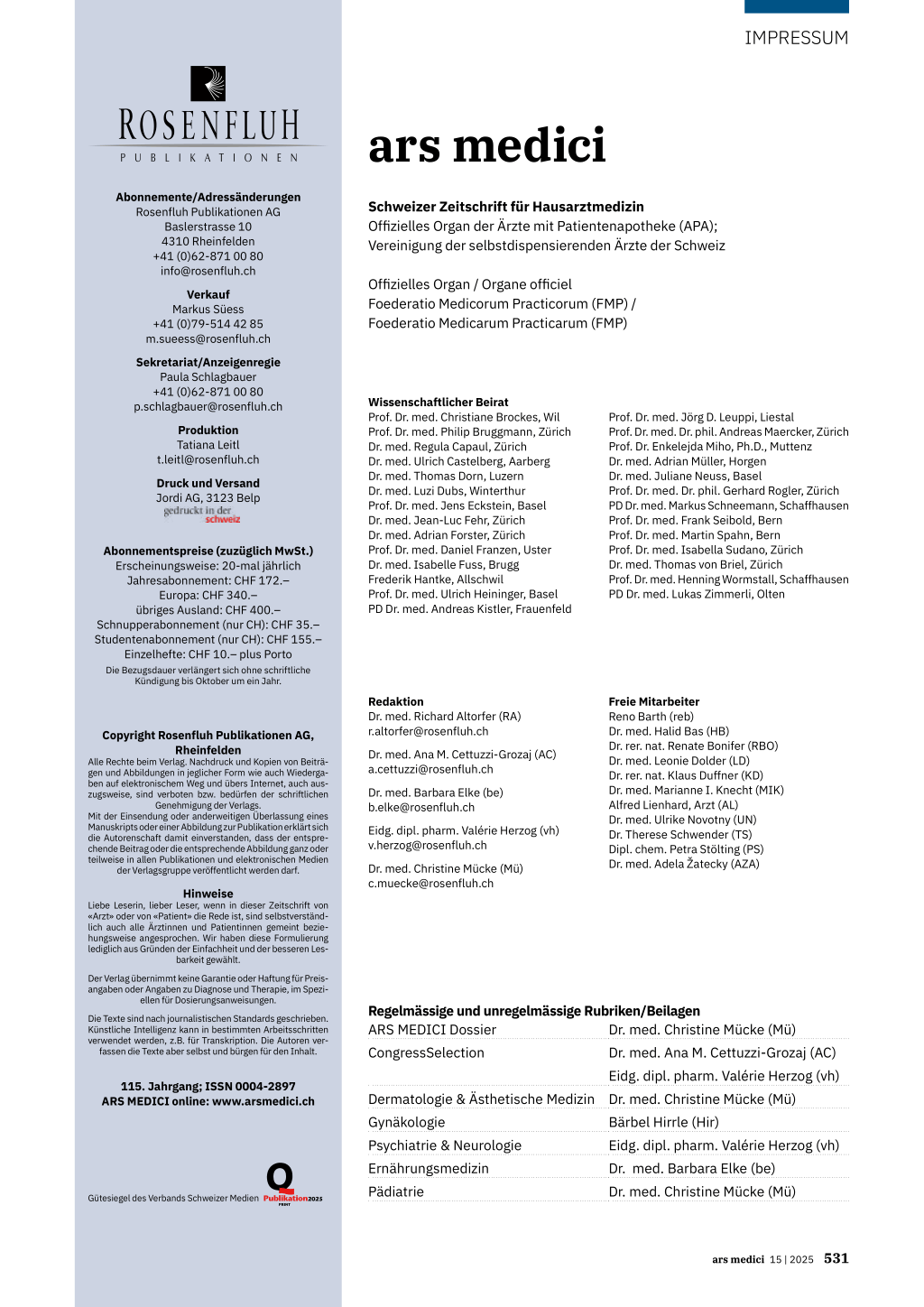 Redaktion Dr. med. Richard Altorfer (RA) r.altorfer@rosenfluh.ch