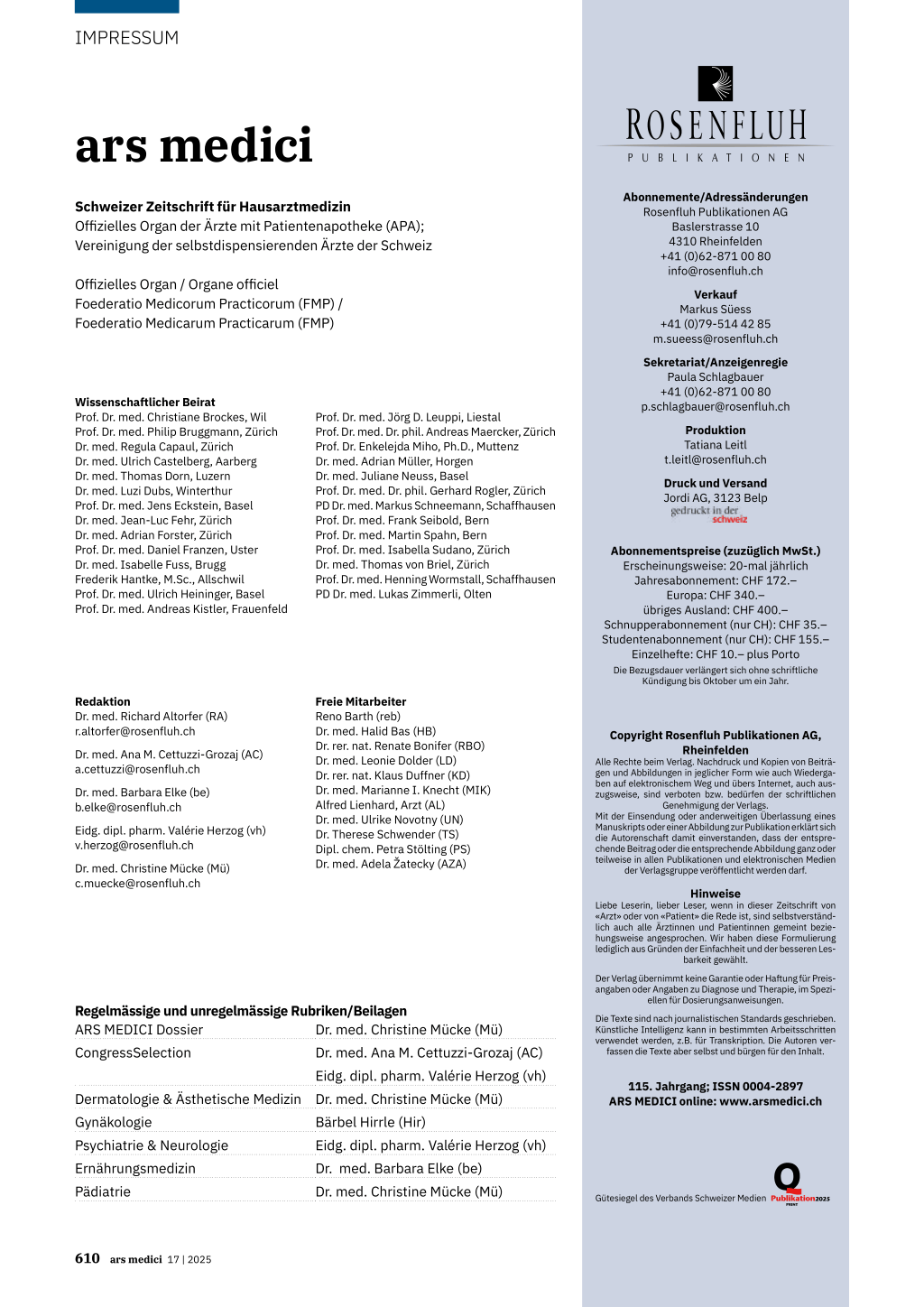 Redaktion Dr. med. Richard Altorfer (RA) r.altorfer@rosenfluh.ch