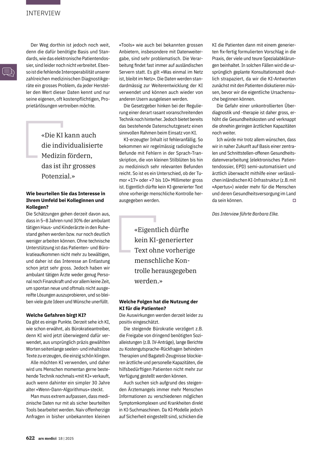 Ein weiteres Potenzial sehe ich auch in der Aus- und Weiterbildung. KI könnte peer- reviewed aktuelles Wissen für Ärzte aufbereiten und uns dann gezielt in individuellen Schulungen anbieten.