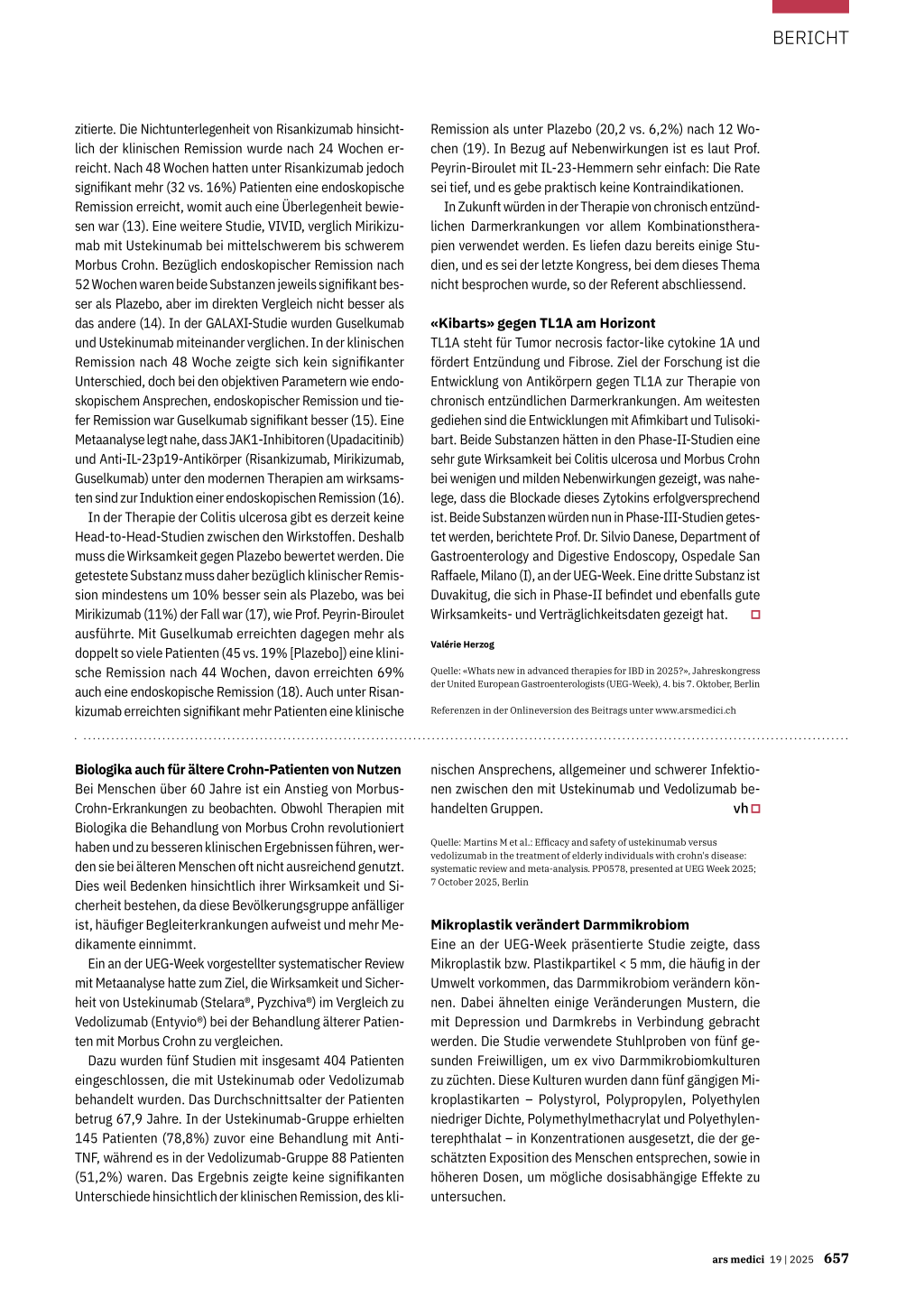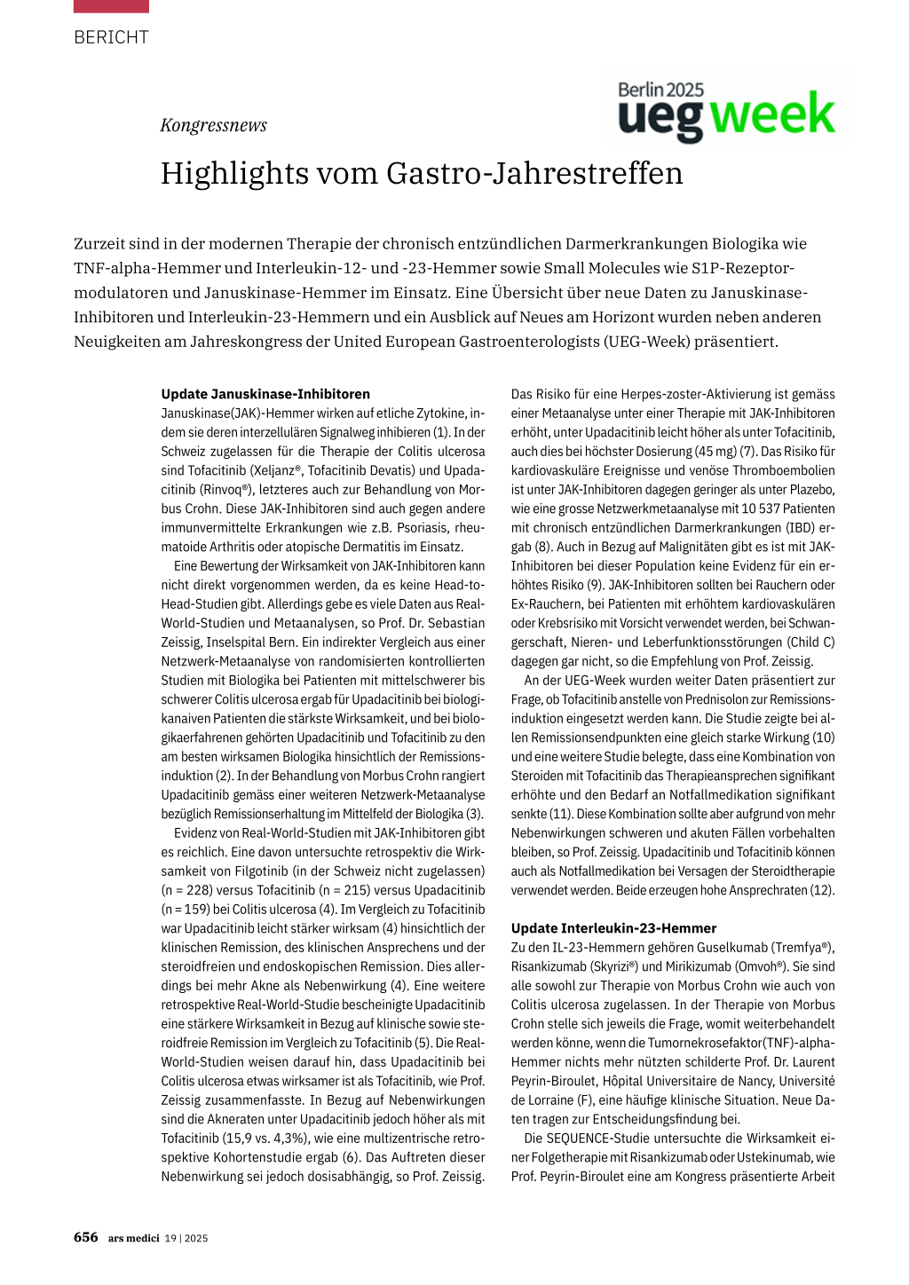 Quelle: «Whats new in advanced therapies for IBD in 2025?», Jahreskongress der United European Gastroenterologists (UEG-Week), 4. bis 7. Oktober, Berlin