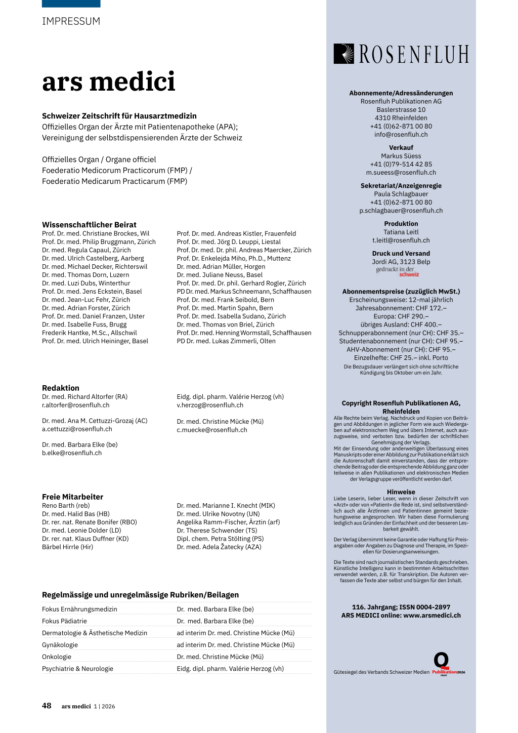 116. Jahrgang; ISSN 0004-2897 ARS MEDICI online: www.arsmedici.ch