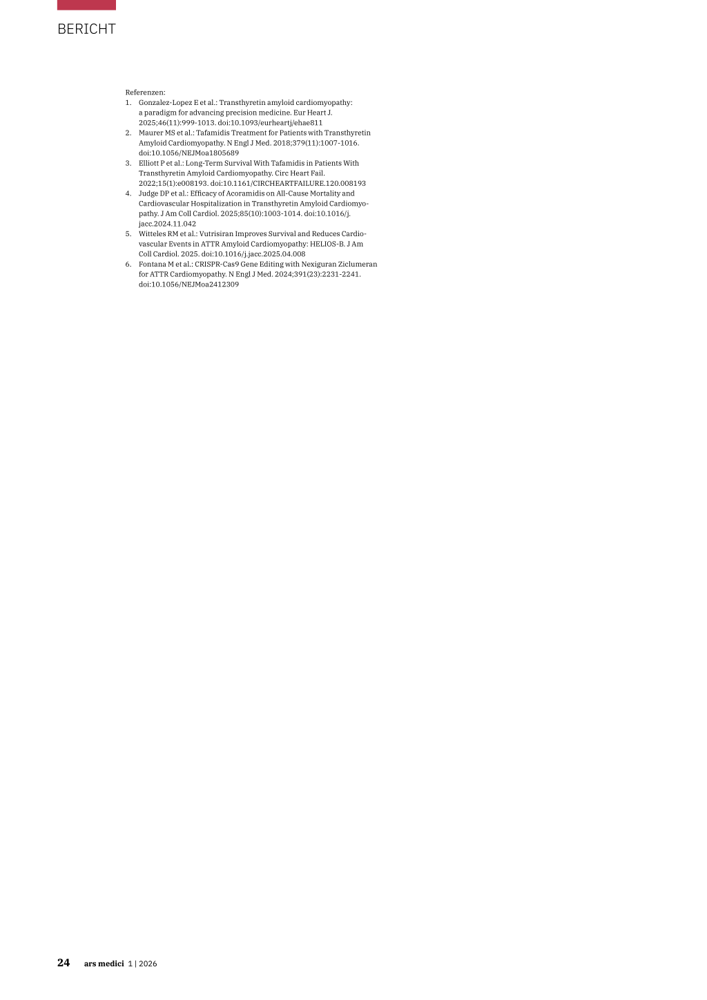 a paradigm for advancing precision medicine. Eur Heart J. 2025;46(11):999-1013. doi:10.1093/eurheartj/ehae811 2. Maurer MS et al.: Tafamidis Treatment for Patients with Transthyretin Amyloid Cardiomyopathy. N Engl J Med. 2018;379(11):1007-1016. doi:10.1056/NEJMoa1805689 3. Elliott P et al.: Long-Term Survival With Tafamidis in Patients With Transthyretin Amyloid Cardiomyopathy. Circ Heart Fail. 2022;15(1):e008193. doi:10.1161/CIRCHEARTFAILURE.120.008193 4. Judge DP et al.: Efficacy of Acoramidis on All-Cause Mortality and Cardiovascular Hospitalization in Transthyretin Amyloid Cardiomyopathy. J Am Coll Cardiol. 2025;85(10):1003-1014. doi:10.1016/j. jacc.2024.11.042 5. Witteles RM et al.: Vutrisiran Improves Survival and Reduces Cardio vascular Events in ATTR Amyloid Cardiomyopathy: HELIOS-B. J Am Coll Cardiol. 2025. doi:10.1016/j.jacc.2025.04.008 6. Fontana M et al.: CRISPR-Cas9 Gene Editing with Nexiguran Ziclumeran for ATTR Cardiomyopathy. N Engl J Med. 2024;391(23):2231-2241. doi:10.1056/NEJMoa2412309