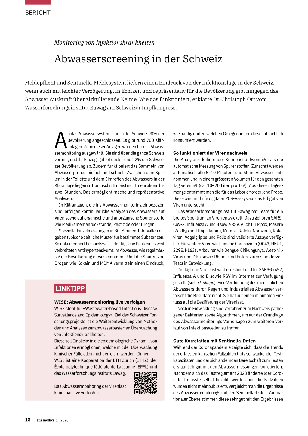 Abwasserscreening, Allgemeine Innere Medizin, Hausarztmedizin, Infektionskrankheiten, Schweizer Impfkongress