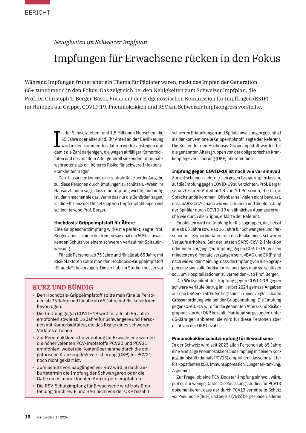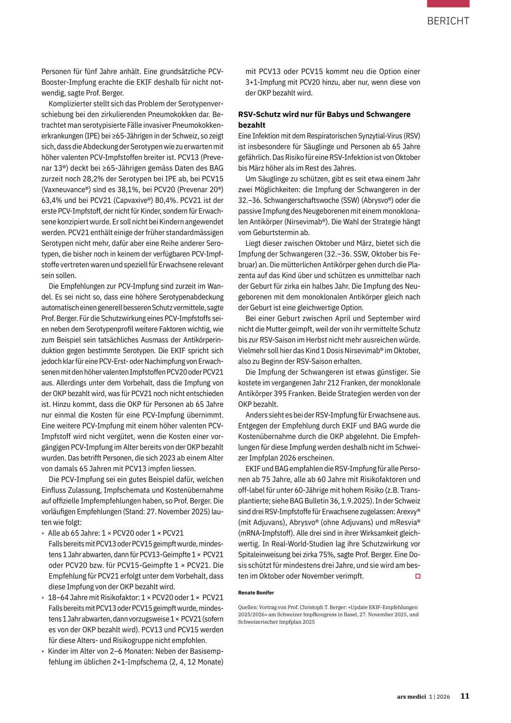 Personen für fünf Jahre anhält. Eine grundsätzliche PCVBooster-Impfung erachte die EKIF deshalb für nicht notwendig, sagte Prof. Berger.