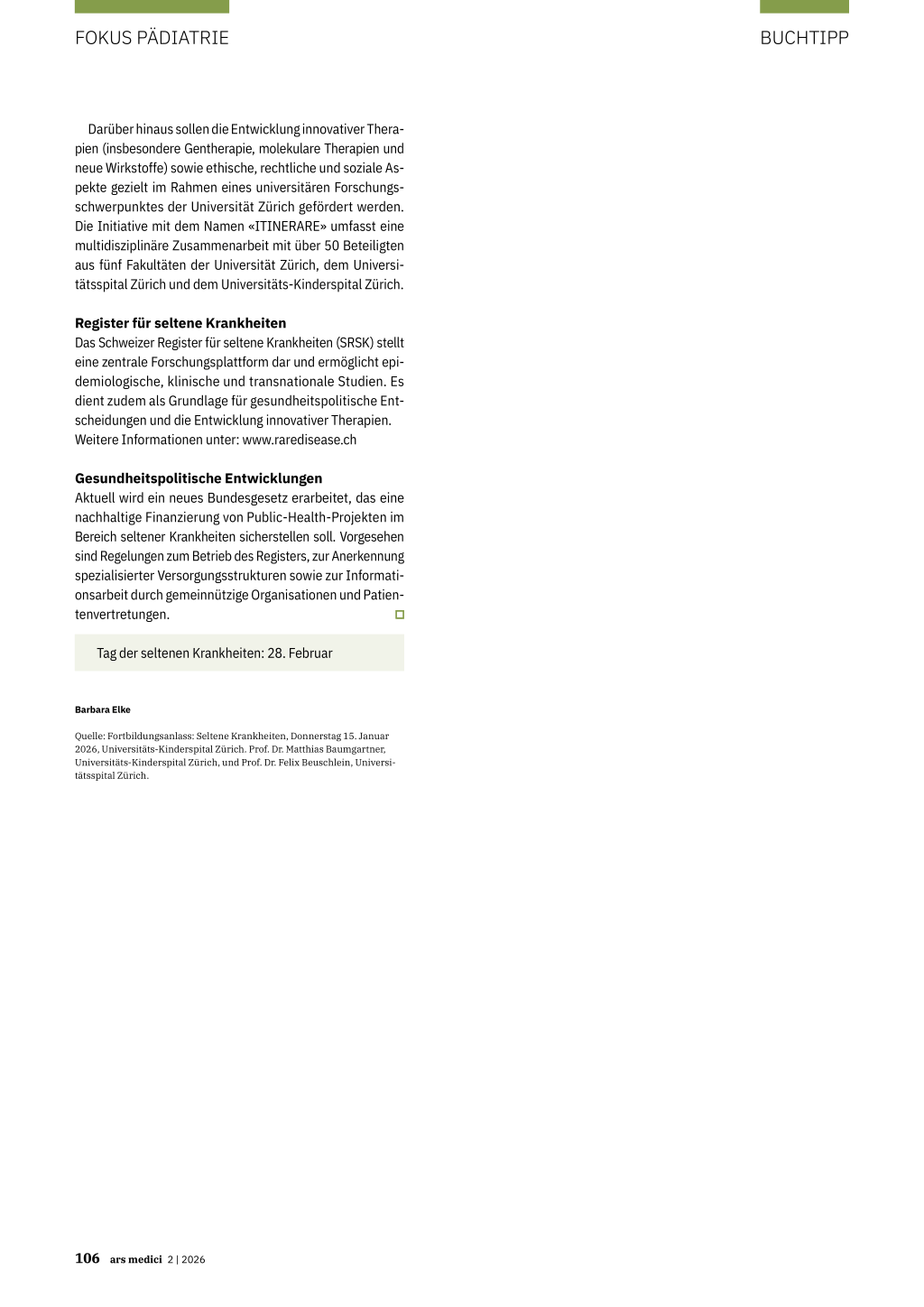 Quelle: Fortbildungsanlass: Seltene Krankheiten, Donnerstag 15. Januar 2026, Universitäts-Kinderspital Zürich. Prof. Dr. Matthias Baumgartner, Universitäts-Kinderspital Zürich, und Prof. Dr. Felix Beuschlein, Universitätsspital Zürich.