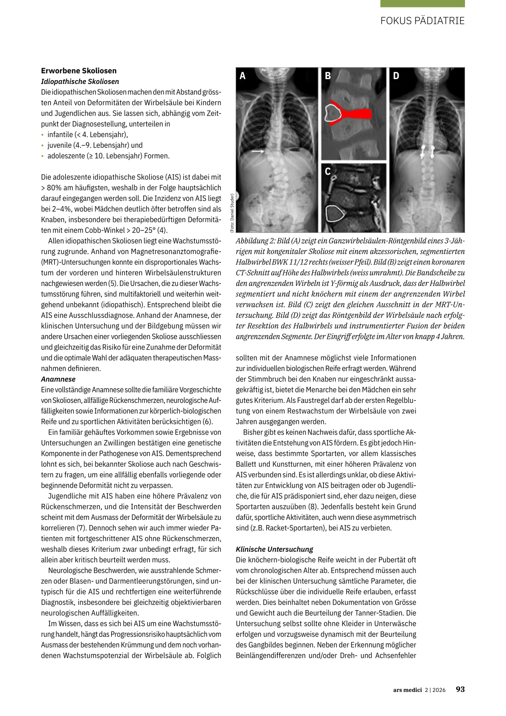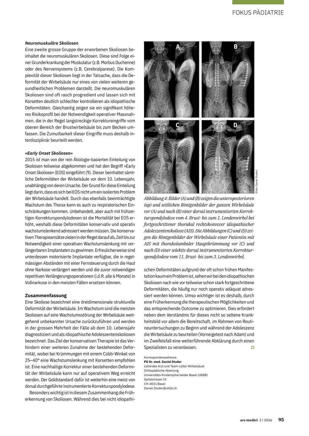 Korrespondenzadresse: PD Dr. med. Daniel Studer Leitender Arzt und Team-Leiter Wirbelsäule Orthopädische Abteilung Universitäts-Kinderspital beider Basel (UKBB) Spitalstrasse 33 CH-4031 Basel Daniel.Studer@ukbb.ch