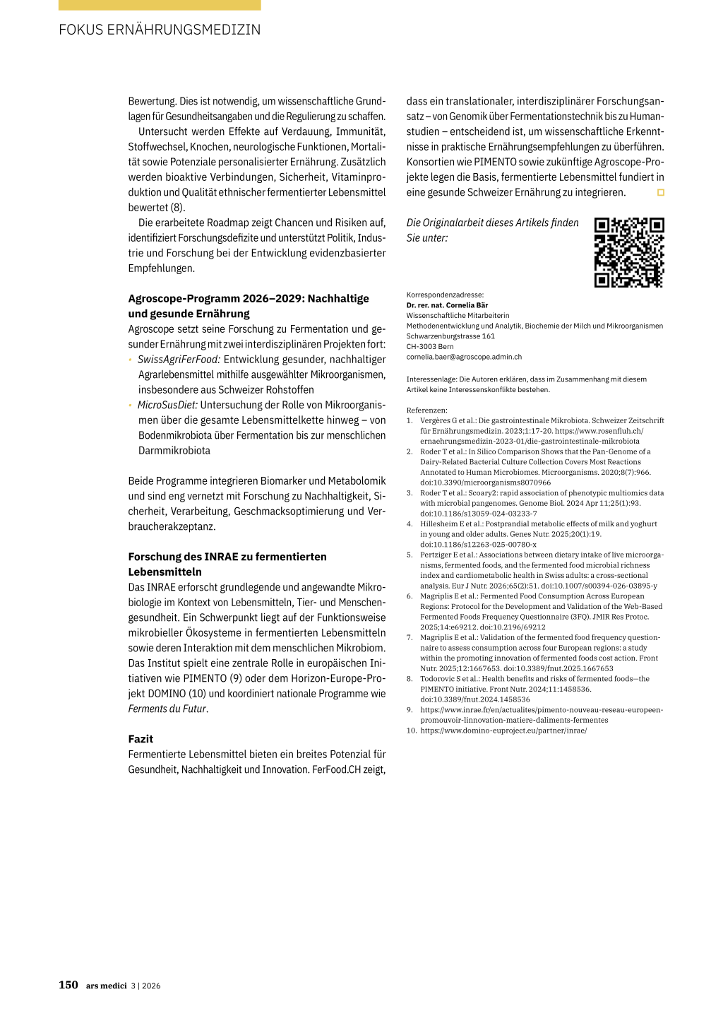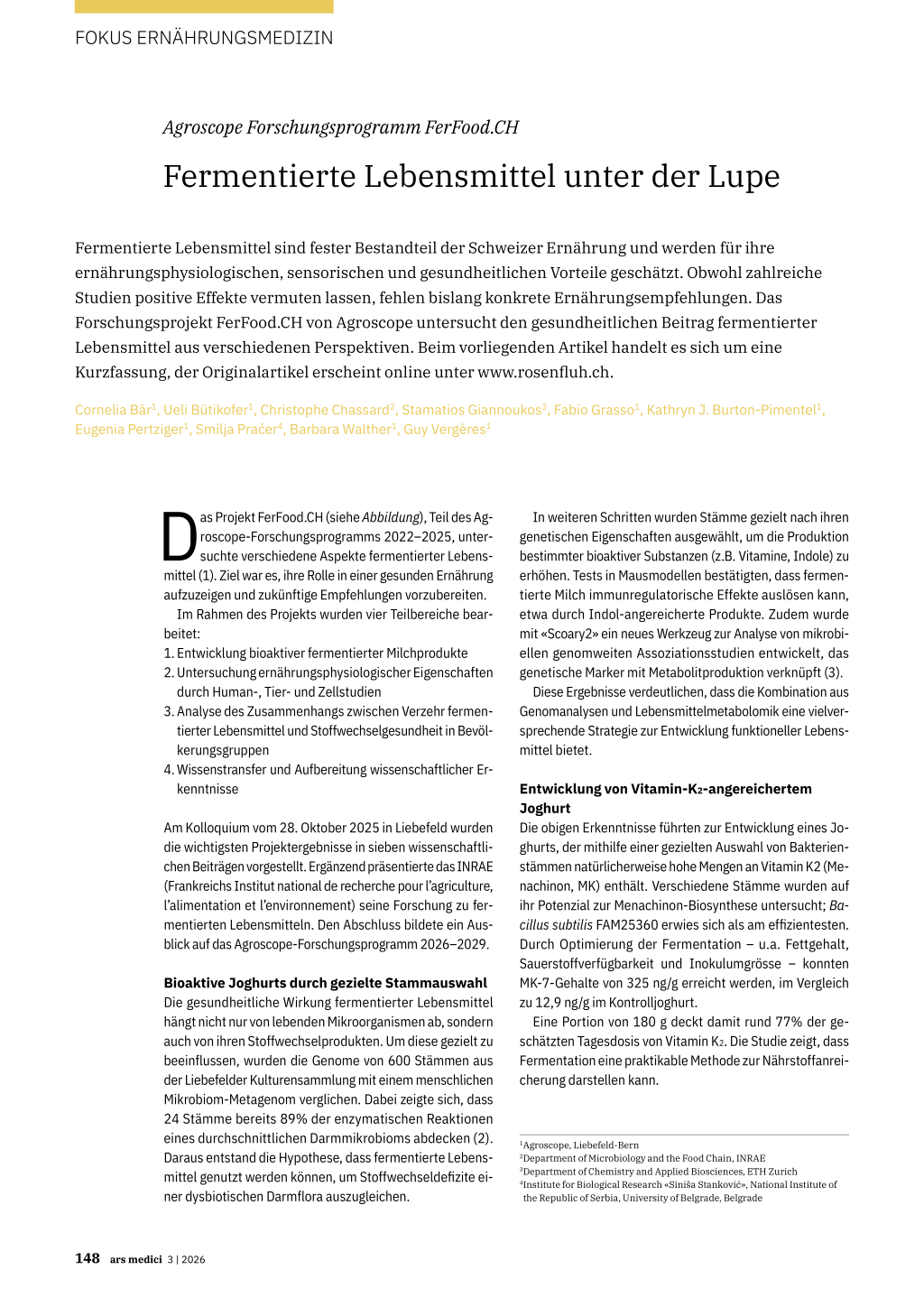 für Ernährungsmedizin. 2023;1:17-20. https://www.rosenfluh.ch/ ernaehrungsmedizin-2023-01/die-gastrointestinale-mikrobiota 2. Roder T et al.: In Silico Comparison Shows that the Pan-Genome of a Dairy-Related Bacterial Culture Collection Covers Most Reactions Annotated to Human Microbiomes. Microorganisms. 2020;8(7):966. doi:10.3390/microorganisms8070966 3. Roder T et al.: Scoary2: rapid association of phenotypic multiomics data with microbial pangenomes. Genome Biol. 2024 Apr 11;25(1):93. doi:10.1186/s13059-024-03233-7 4. Hillesheim E et al.: Postprandial metabolic effects of milk and yoghurt in young and older adults. Genes Nutr. 2025;20(1):19. doi:10.1186/s12263-025-00780-x 5. Pertziger E et al.: Associations between dietary intake of live microorganisms, fermented foods, and the fermented food microbial richness index and cardiometabolic health in Swiss adults: a cross-sectional analysis. Eur J Nutr. 2026;65(2):51. doi:10.1007/s00394-026-03895-y 6. Magriplis E et al.: Fermented Food Consumption Across European Regions: Protocol for the Development and Validation of the Web-Based Fermented Foods Frequency Questionnaire (3FQ). JMIR Res Protoc. 2025;14:e69212. doi:10.2196/69212 7. Magriplis E et al.: Validation of the fermented food frequency questionnaire to assess consumption across four European regions: a study within the promoting innovation of fermented foods cost action. Front Nutr. 2025;12:1667653. doi:10.3389/fnut.2025.1667653 8. Todorovic S et al.: Health benefits and risks of fermented foods—the PIMENTO initiative. Front Nutr. 2024;11:1458536. doi:10.3389/fnut.2024.1458536 9. https://www.inrae.fr/en/actualites/pimento-nouveau-reseau-europeenpromouvoir-linnovation-matiere-daliments-fermentes 10. https://www.domino-euproject.eu/partner/inrae/