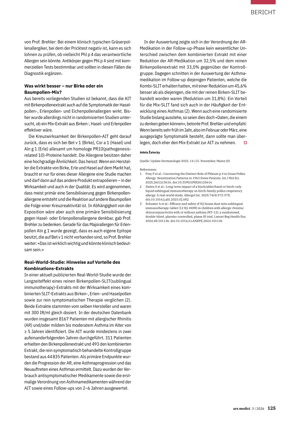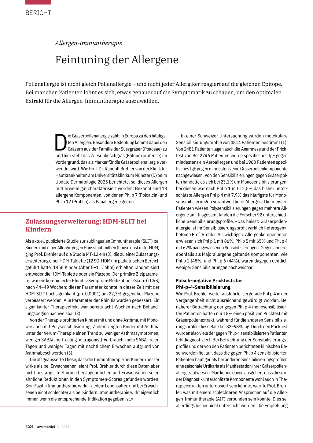 Allergy: Sensitization Patterns in 1963 Swiss Patients. Int J Mol Sci. 2025;26(12):5616. doi:10.3390/IJMS26125616 2 Zielen S et al.: Long-term impact of a birch/alder/hazel or birch-only liquid sublingual immunotherapy on birch-family pollen respiratory allergy: A real-world study. Allergol Int. 2025;74(4):572-578. doi:10.1016/j.alit.2025.02.002 3 Schuster A et al.: Efficacy and safety of SQ house dust mite sublingual immunotherapy-tablet (12 SQ-HDM) in children with allergic rhinitis/ rhinoconjunctivitis with or without asthma (MT-12): a randomised, double-blind, placebo-controlled, phase III trial. Lancet Reg Health Eur. 2024;48:101136. doi:10.1016/J.LANEPE.2024.101136