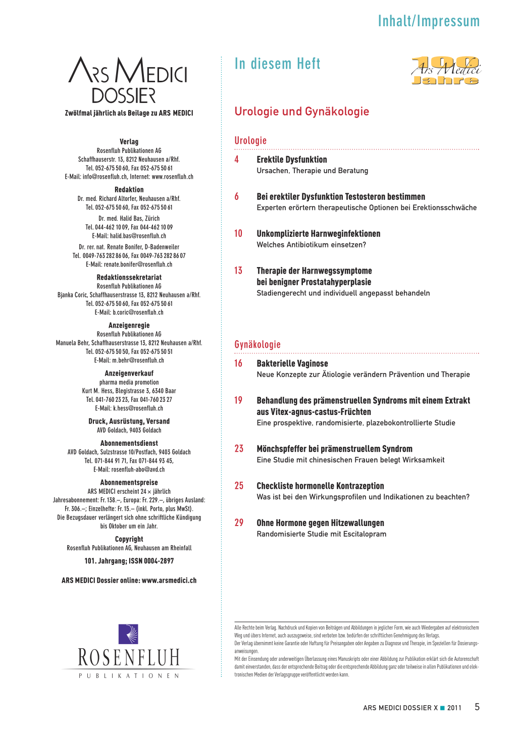 Abonnementspreise ARS MEDICI erscheint 24 × jährlich Jahresabonnement: Fr. 138.–, Europa: Fr. 229.–, übriges Ausland: Fr. 306.–; Einzelhefte: Fr. 15.– (inkl. Porto, plus MwSt). Die Bezugsdauer verlängert sich ohne schriftliche Kündigung