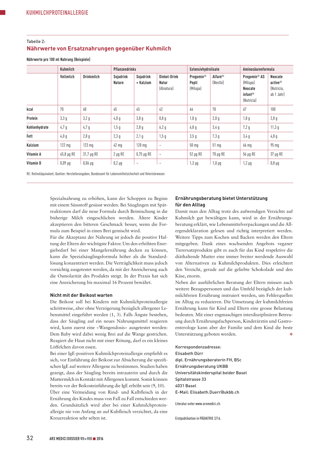 Korrespondenzadresse: Elisabeth Dürr dipl. Ernährungsberaterin FH, BSc Ernährungsberatung UKBB Universitätskinderspital beider Basel Spitalstrasse 33 4031 Basel E-Mail: Elisabeth.Duerr@ukbb.ch