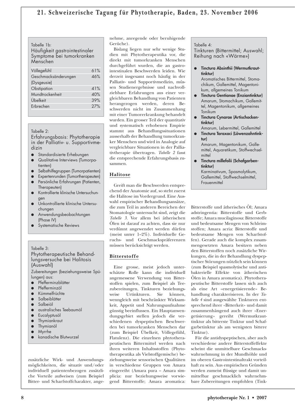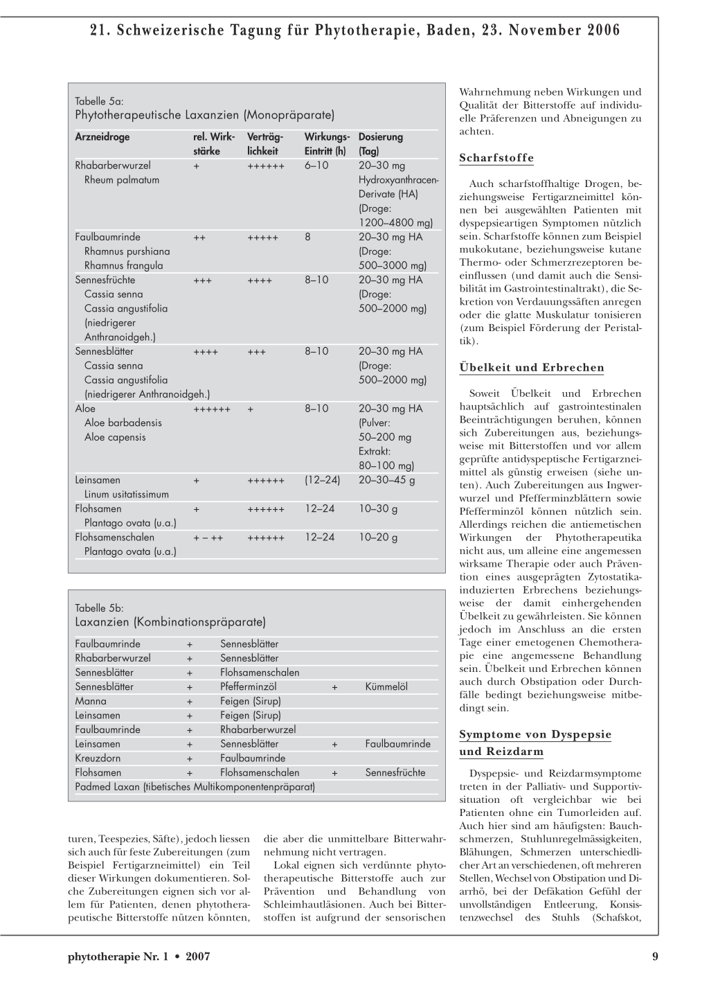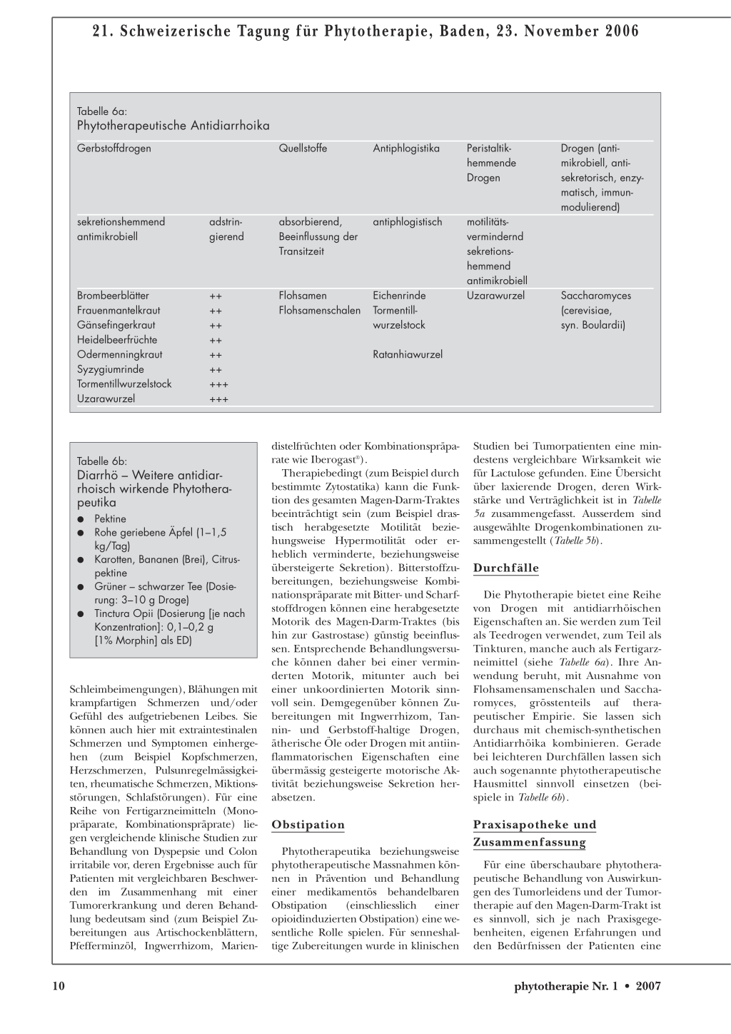 21. Schweizerische Tagung für Phytotherapie, Baden, 23. November 2006