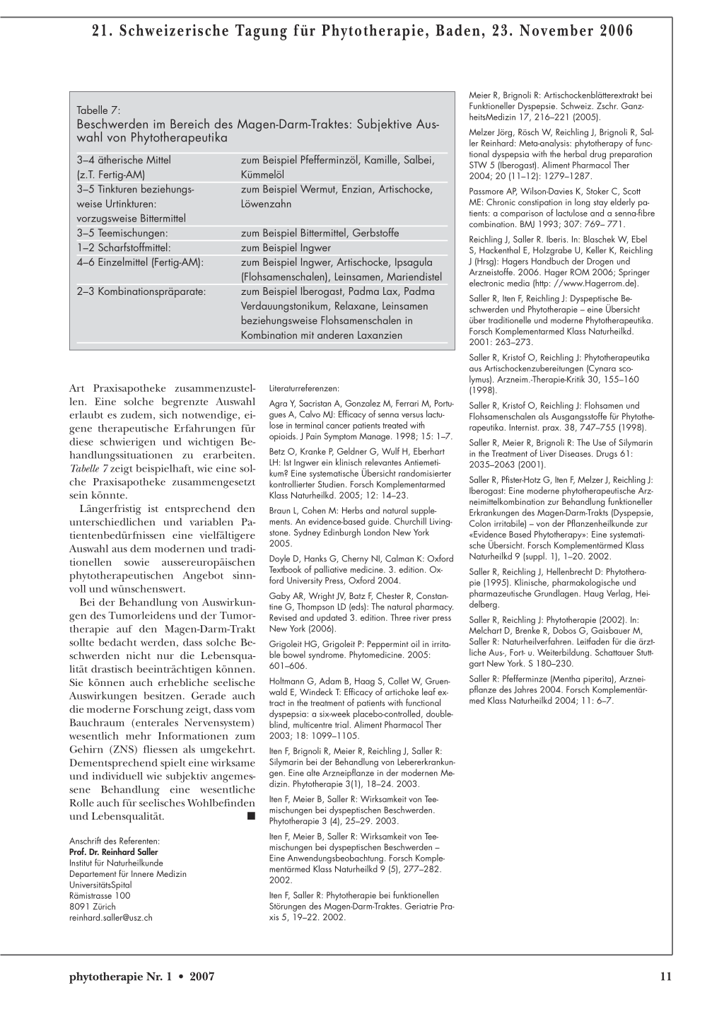 Iten F, Saller R: Phytotherapie bei funktionellen Störungen des Magen-Darm-Traktes. Geriatrie Praxis 5, 19–22. 2002.