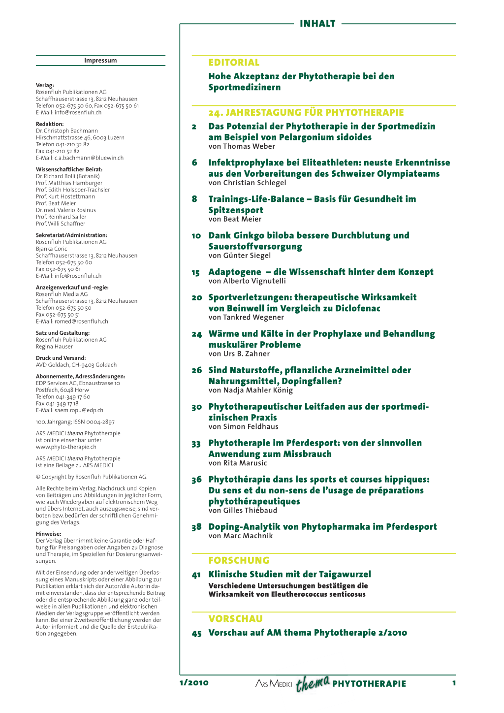 EDITORIAL Hohe Akzeptanz der Phytotherapie bei den Sportmedizinern