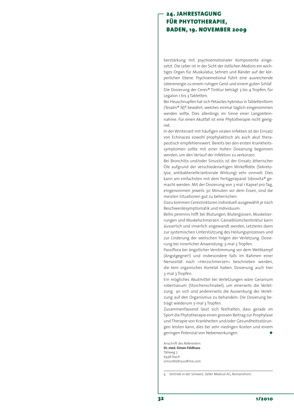 24. JAHRESTAGUNG FÜR PHYTOTHERAPIE, BADEN, 19. NOVEMBER 2009