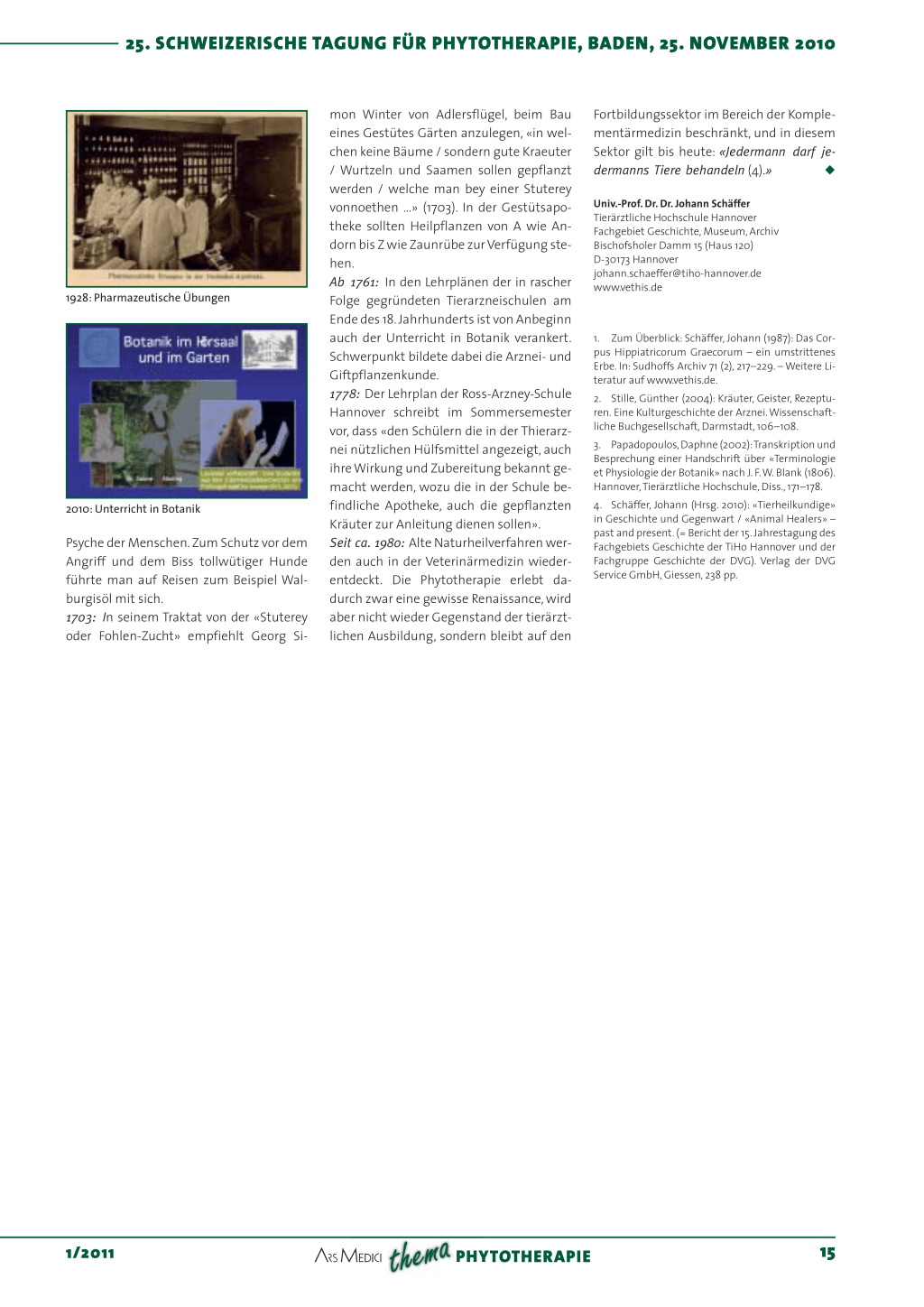 Univ.-Prof. Dr. Dr. Johann Schäffer Tierärztliche Hochschule Hannover Fachgebiet Geschichte, Museum, Archiv Bischofsholer Damm 15 (Haus 120) D-30173 Hannover johann.schaeffer@tiho-hannover.de www.vethis.de