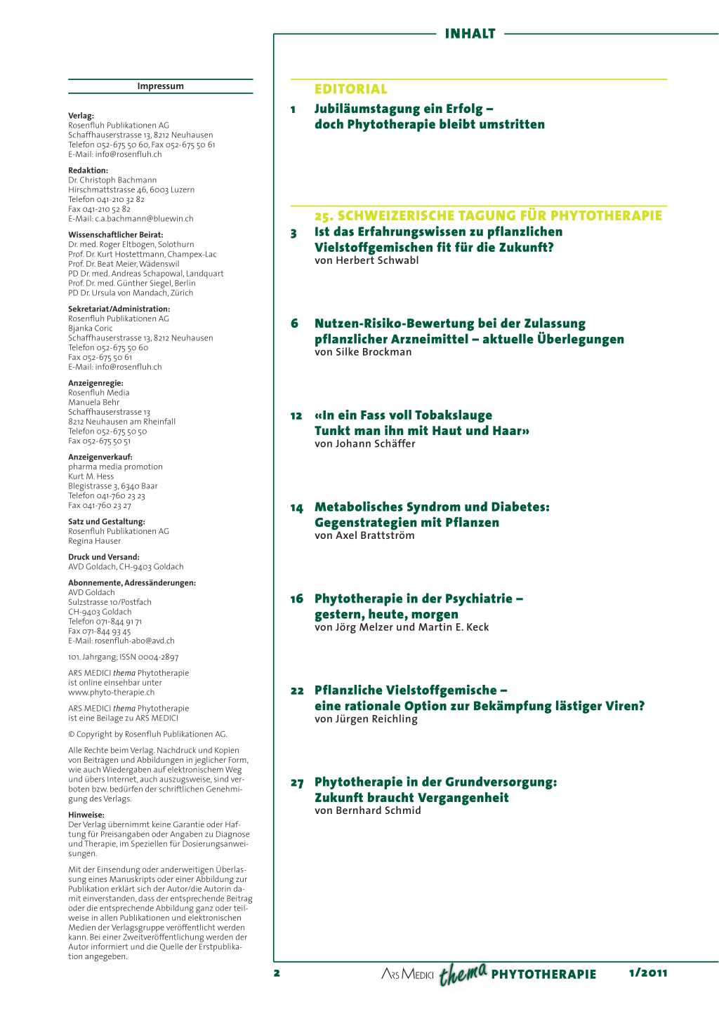 Anzeigenverkauf: pharma media promotion Kurt M. Hess Blegistrasse 3, 6340 Baar Telefon 041-760 23 23 Fax 041-760 23 27