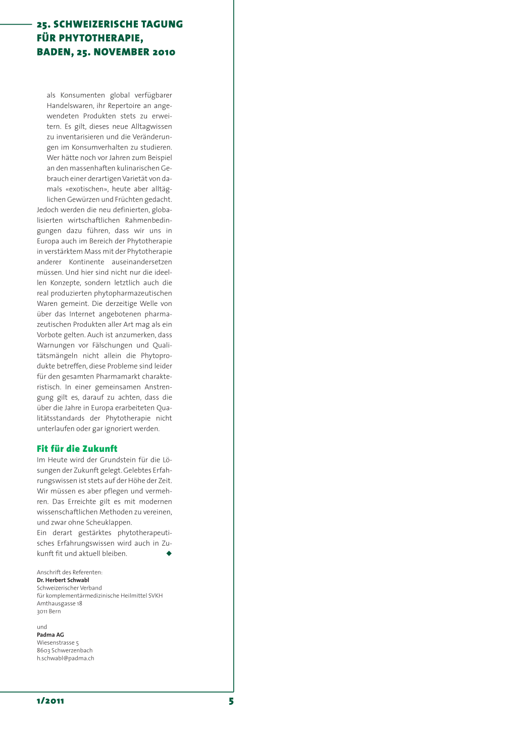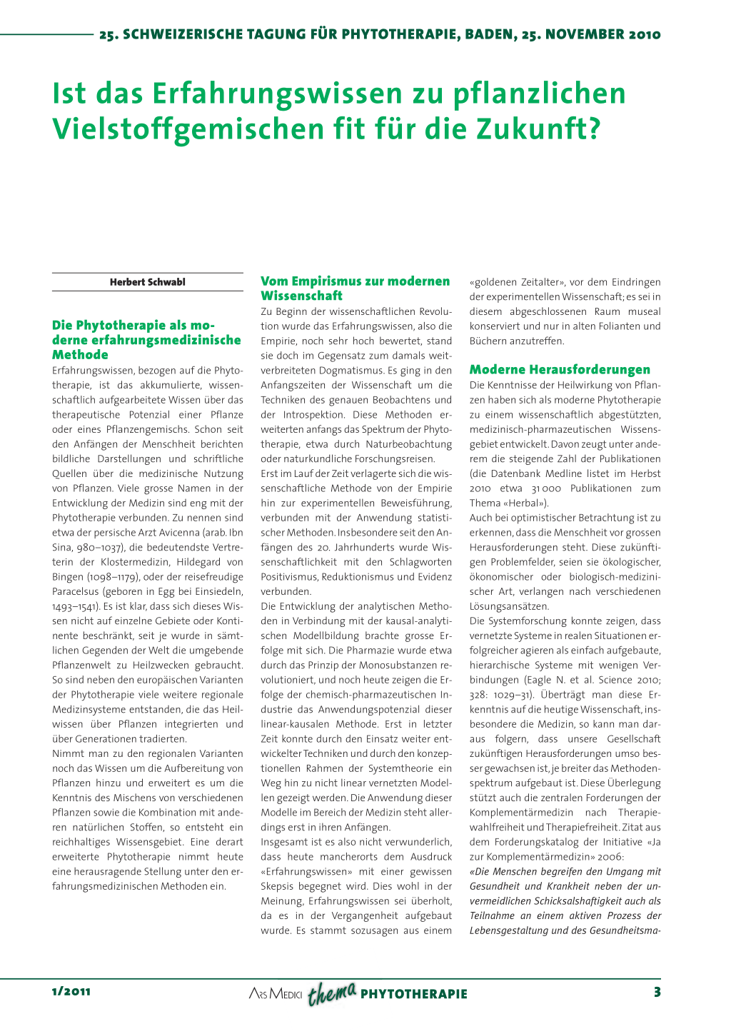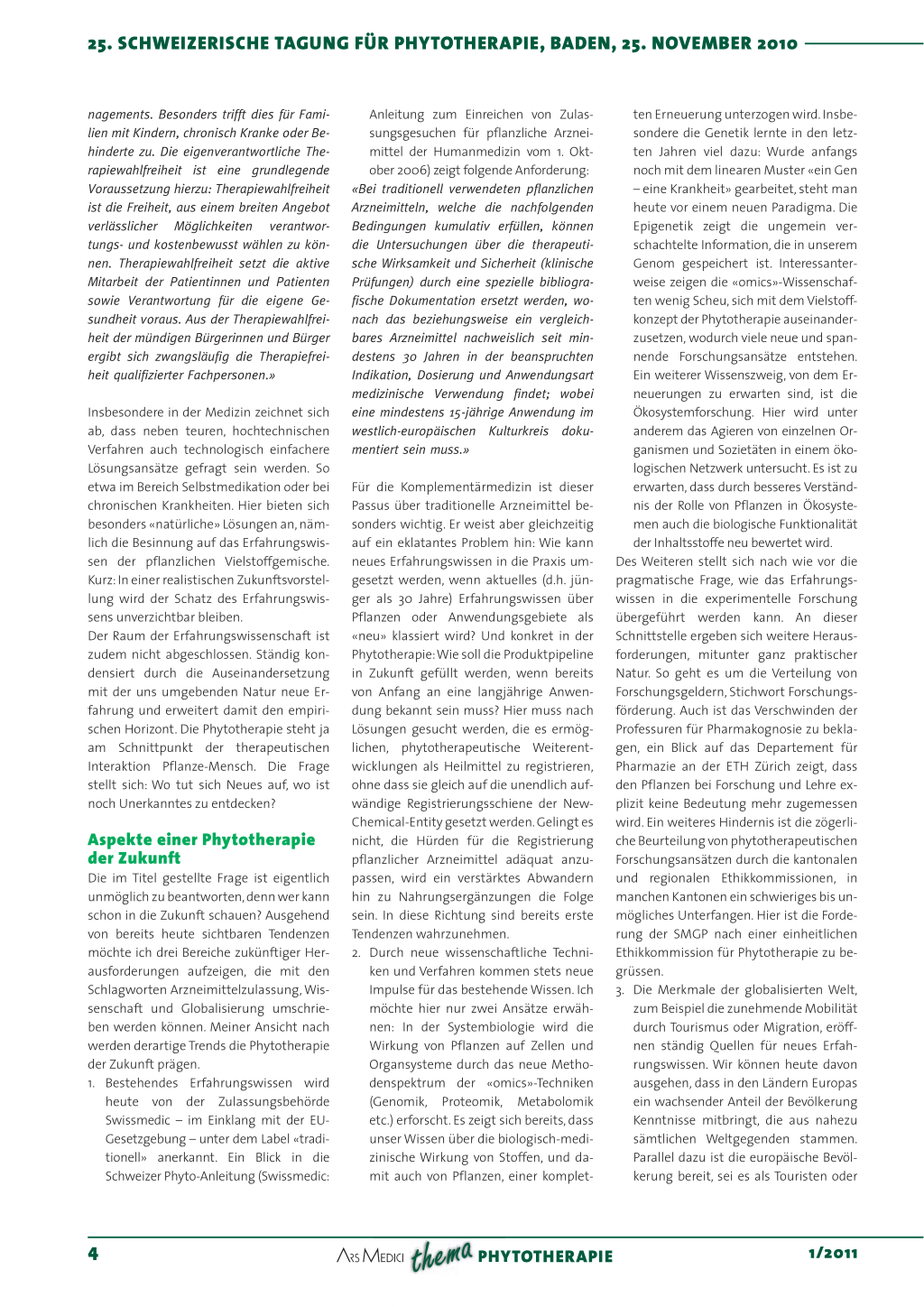 25. SCHWEIZERISCHE TAGUNG FÜR PHYTOTHERAPIE, BADEN, 25. NOVEMBER 2010