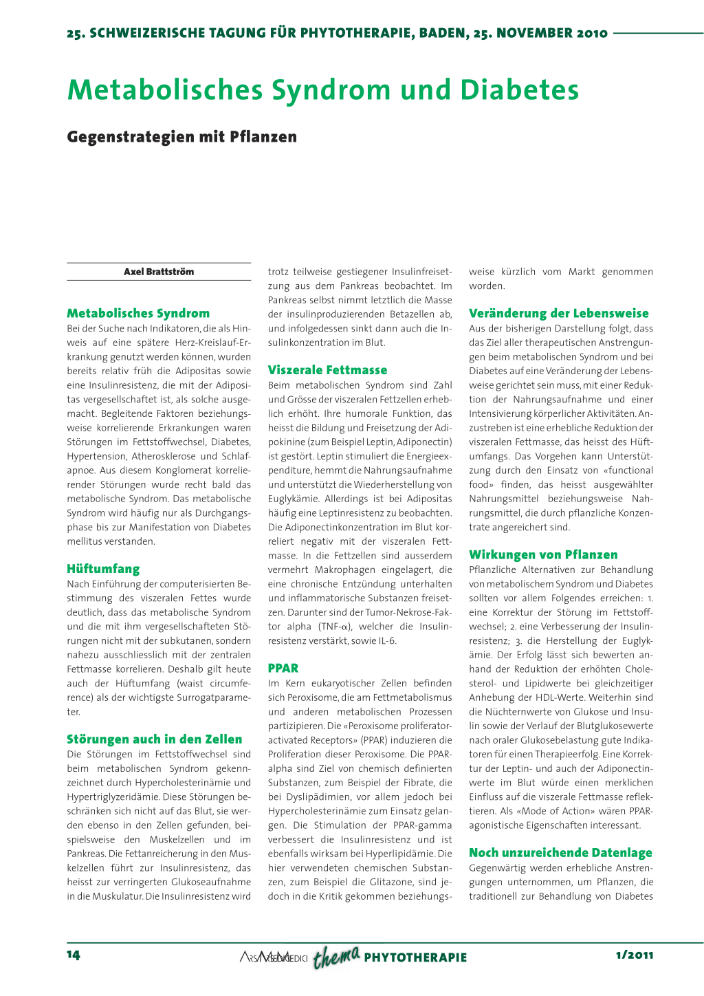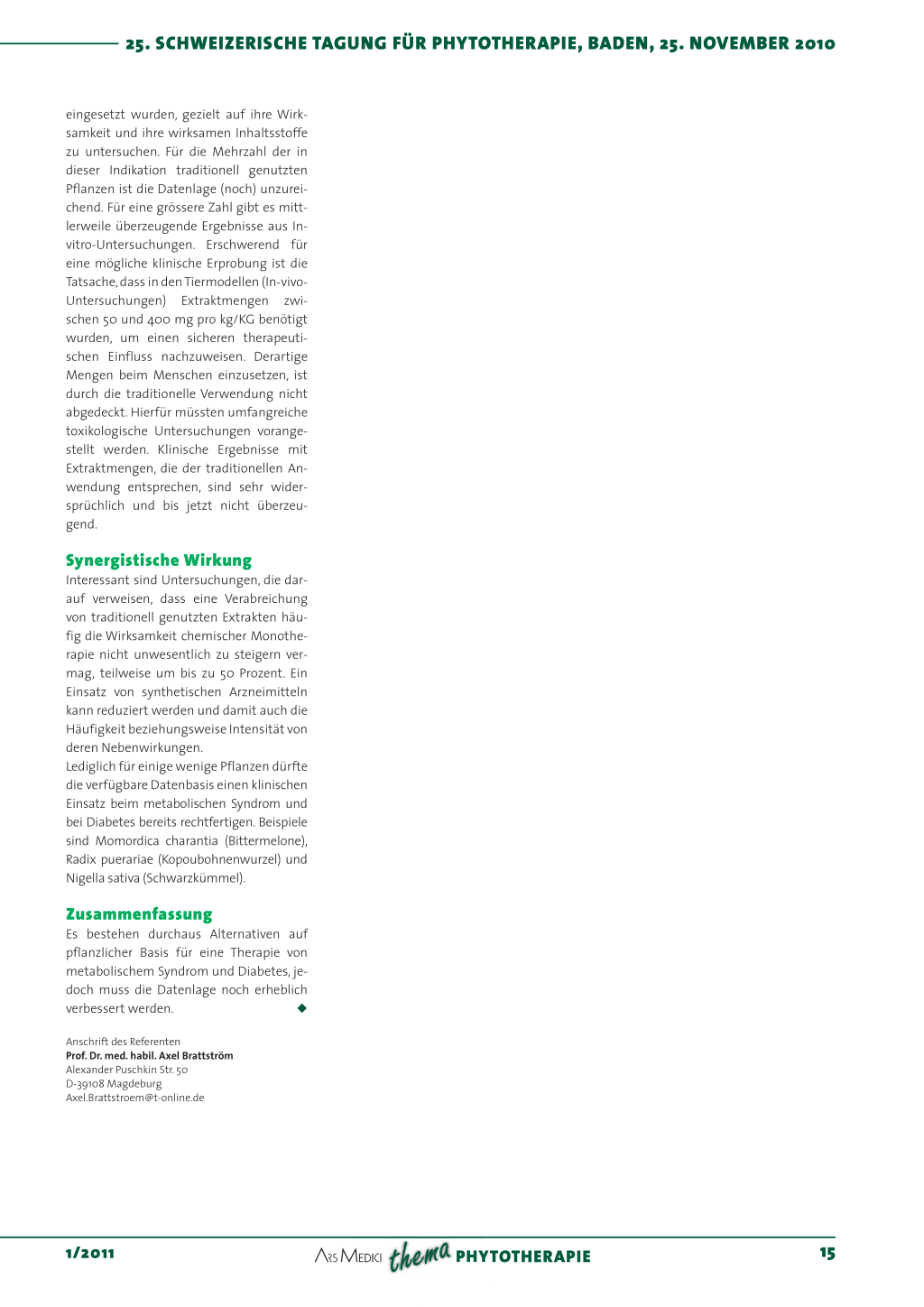 25. SCHWEIZERISCHE TAGUNG FÜR PHYTOTHERAPIE, BADEN, 25. NOVEMBER 2010