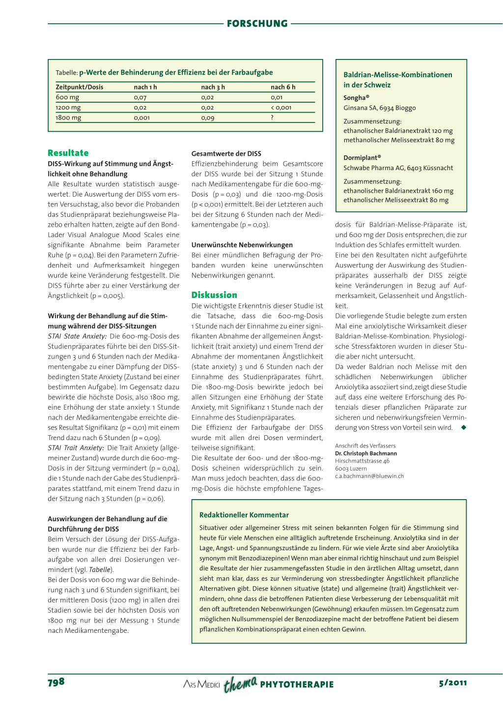 1 Orginalpublikation: Kennedey D.O. et al.: Anxiolytic Effects of a Combination of Melissa officinalis and Valeriana officinalis during Laboratory induced Stress, Phytother Res 2006; 20: 96–102.