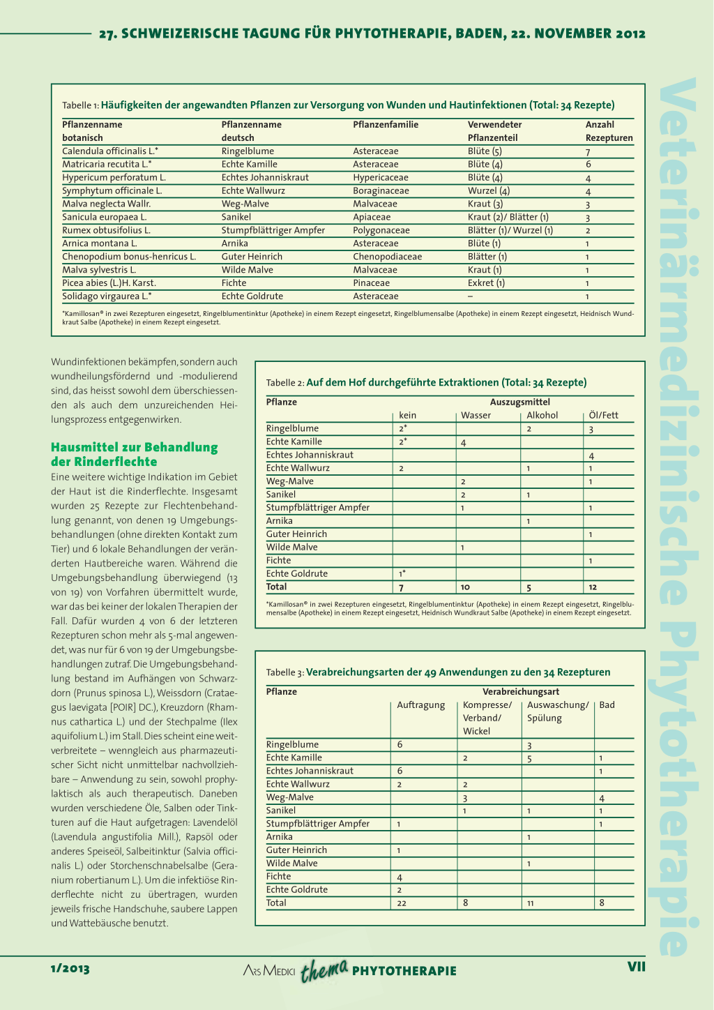 Einsatz pflanzlicher Hausmittel durch Landwirte in der Schweiz zur Versorgung von Wunden und Hautveränderungen beim Tier