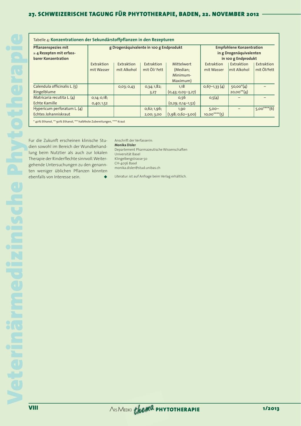 27. SCHWEIZERISCHE TAGUNG FÜR PHYTOTHERAPIE, BADEN, 22. NOVEMBER 2012