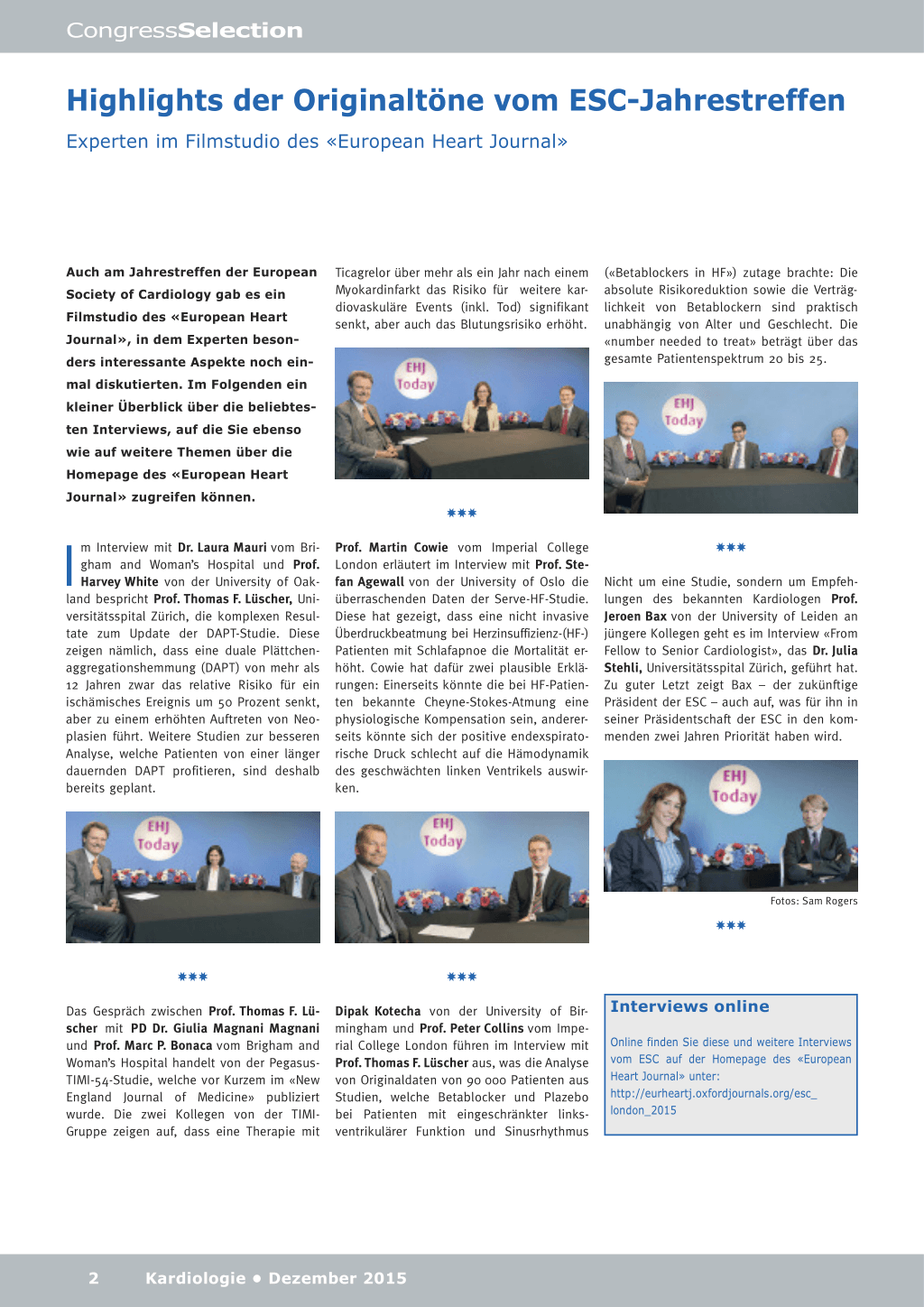 Online finden Sie diese und weitere Interviews vom ESC auf der Homepage des «European Heart Journal» unter: http://eurheartj.oxfordjournals.org/esc_ london_2015