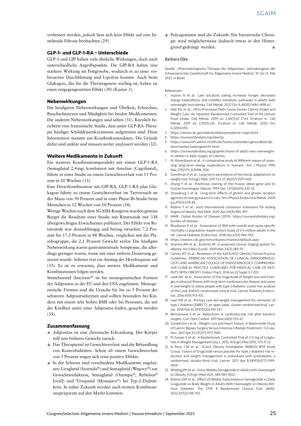 Quelle: «Pharmakologische Therapie der Adipositas». Jahreskongress der Schweizerischen Gesellschaft für Allgemeine Innere Medizin, 10. bis 12. Mai 2023, in Basel.