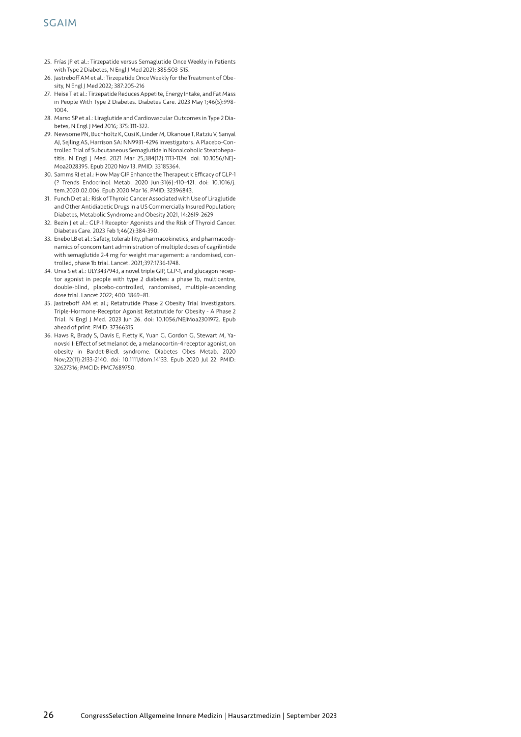 26. Jastreboff AM et al.: Tirzepatide Once Weekly for the Treatment of Obesity, N Engl J Med 2022; 387:205-216