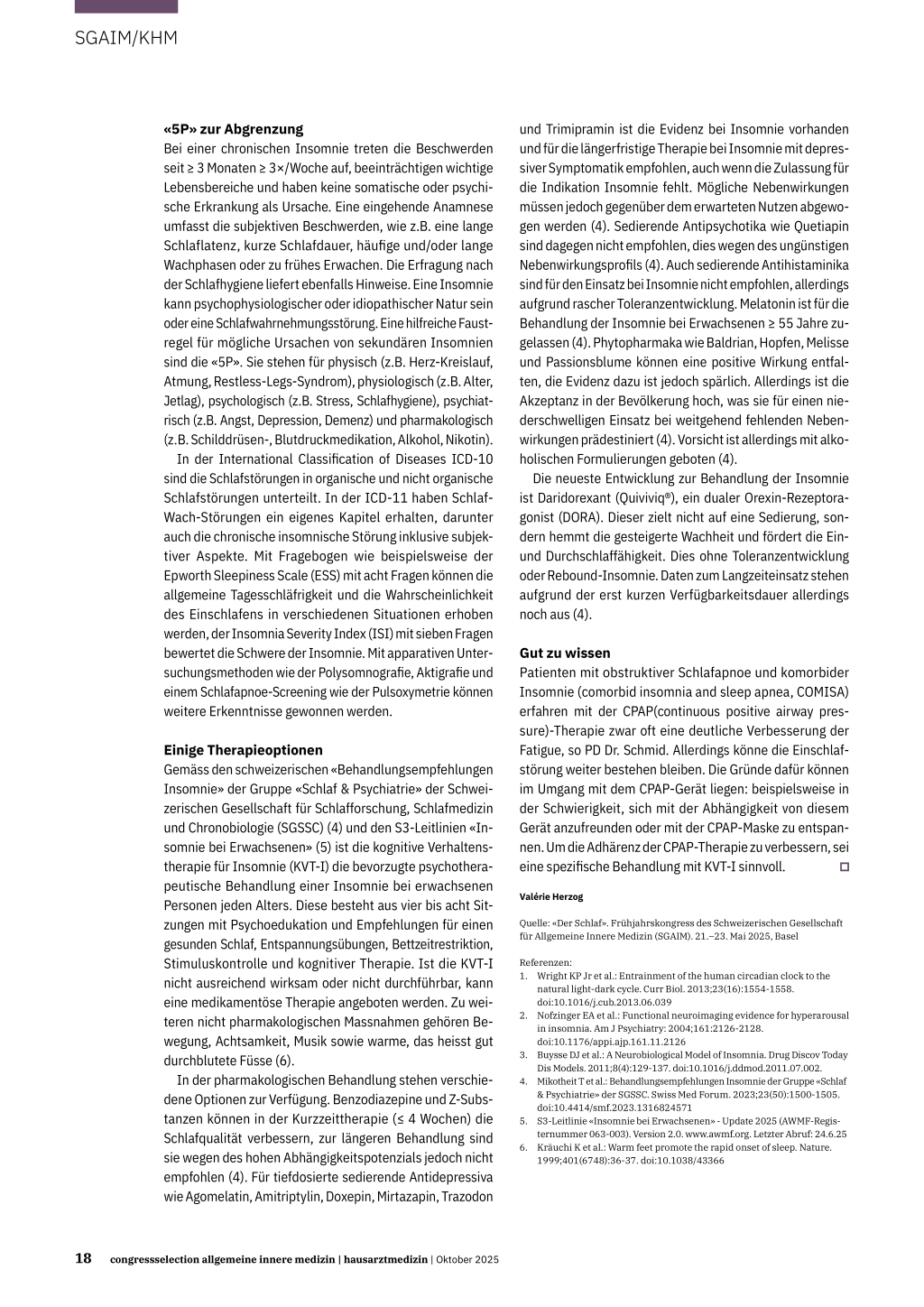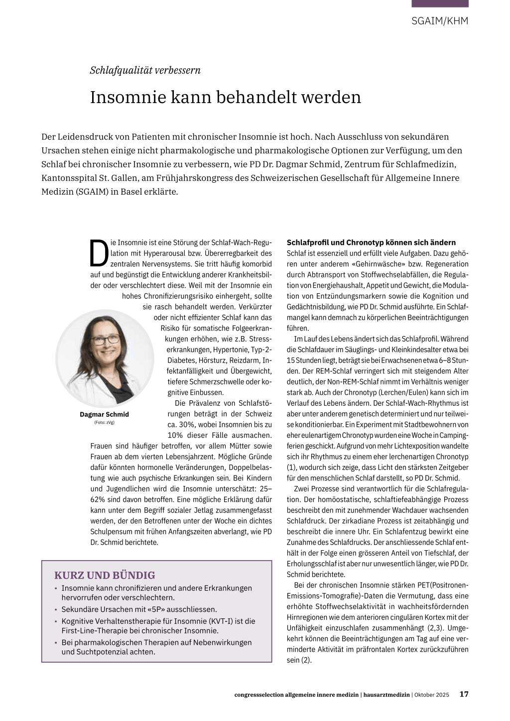 Quelle: «Der Schlaf». Frühjahrskongress des Schweizerischen Gesellschaft für Allgemeine Innere Medizin (SGAIM). 21.–23. Mai 2025, Basel