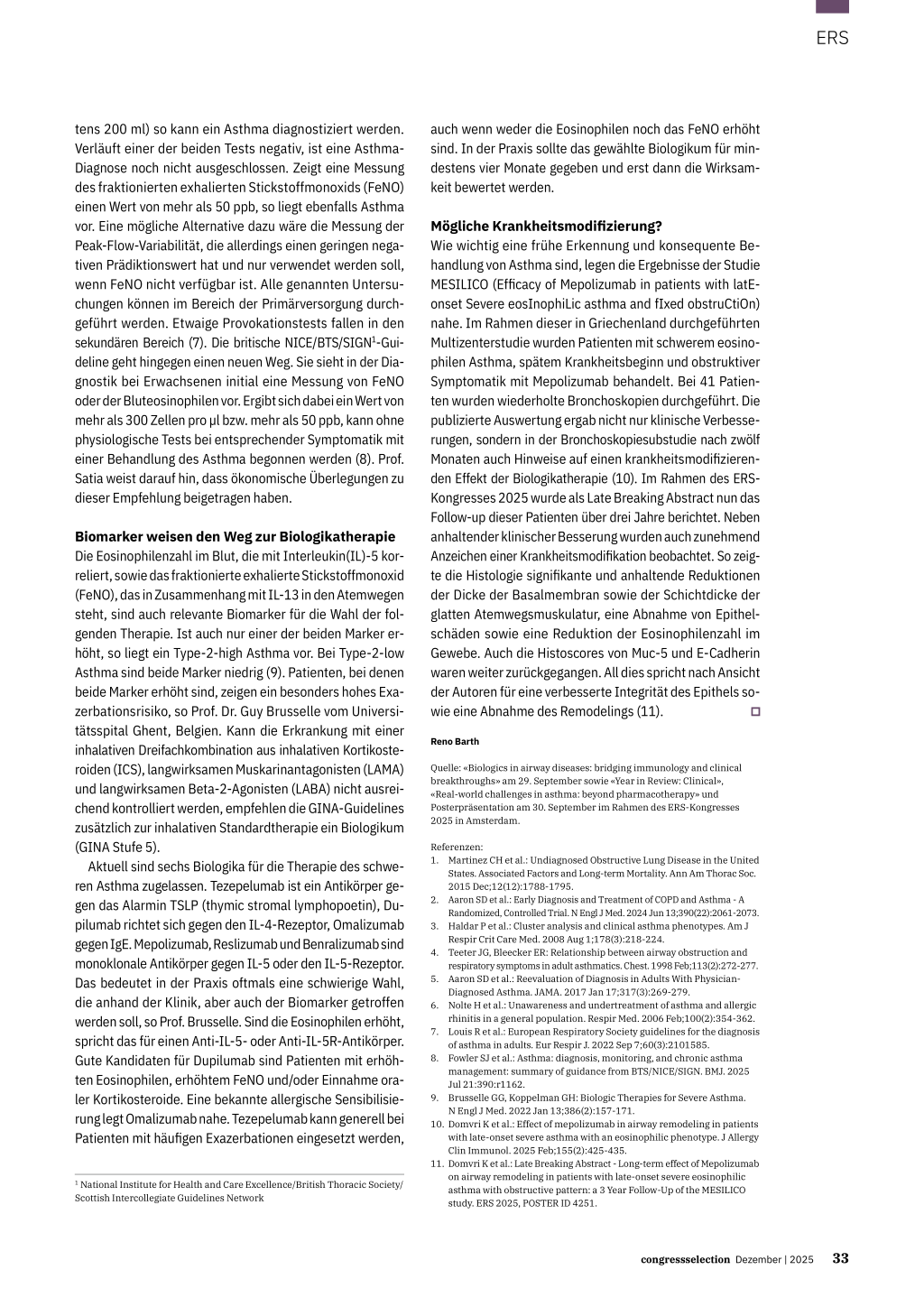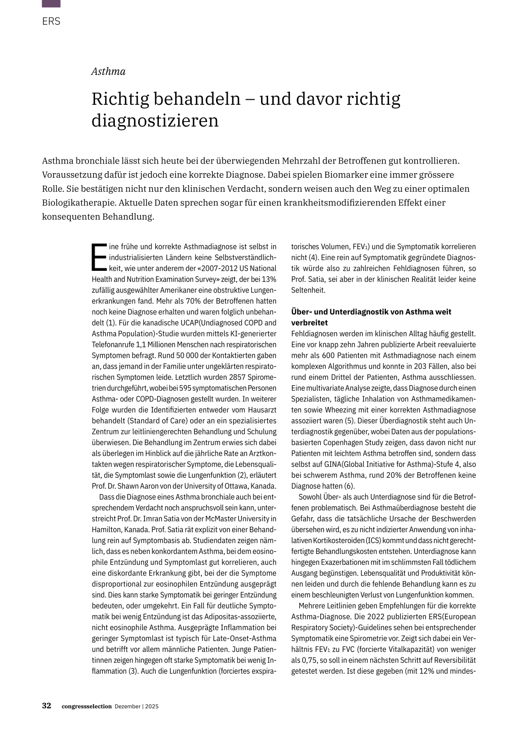 States. Associated Factors and Long-term Mortality. Ann Am Thorac Soc. 2015 Dec;12(12):1788-1795. 2. Aaron SD et al.: Early Diagnosis and Treatment of COPD and Asthma - A Randomized, Controlled Trial. N Engl J Med. 2024 Jun 13;390(22):2061-2073. 3. Haldar P et al.: Cluster analysis and clinical asthma phenotypes. Am J Respir Crit Care Med. 2008 Aug 1;178(3):218-224. 4. Teeter JG, Bleecker ER: Relationship between airway obstruction and respiratory symptoms in adult asthmatics. Chest. 1998 Feb;113(2):272-277. 5. Aaron SD et al.: Reevaluation of Diagnosis in Adults With Physician- Diagnosed Asthma. JAMA. 2017 Jan 17;317(3):269-279. 6. Nolte H et al.: Unawareness and undertreatment of asthma and allergic rhinitis in a general population. Respir Med. 2006 Feb;100(2):354-362. 7. Louis R et al.: European Respiratory Society guidelines for the diagnosis of asthma in adults. Eur Respir J. 2022 Sep 7;60(3):2101585. 8. Fowler SJ et al.: Asthma: diagnosis, monitoring, and chronic asthma management: summary of guidance from BTS/NICE/SIGN. BMJ. 2025 Jul 21:390:r1162. 9. Brusselle GG, Koppelman GH: Biologic Therapies for Severe Asthma. N Engl J Med. 2022 Jan 13;386(2):157-171. 10. Domvri K et al.: Effect of mepolizumab in airway remodeling in patients with late-onset severe asthma with an eosinophilic phenotype. J Allergy Clin Immunol. 2025 Feb;155(2):425-435. 11. Domvri K et al.: Late Breaking Abstract - Long-term effect of Mepolizumab on airway remodeling in patients with late-onset severe eosinophilic asthma with obstructive pattern: a 3 Year Follow-Up of the MESILICO study. ERS 2025, POSTER ID 4251.