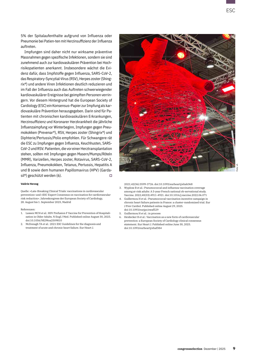 Quelle: «Late-Breaking Clinical Trials: vaccinations in cardiovascular prevention» und «ESC Expert Consensus on vaccination for cardiovascular risk reduction». Jahreskongress der European Society of Cardiology, 28. August bis 1. September 2025, Madrid