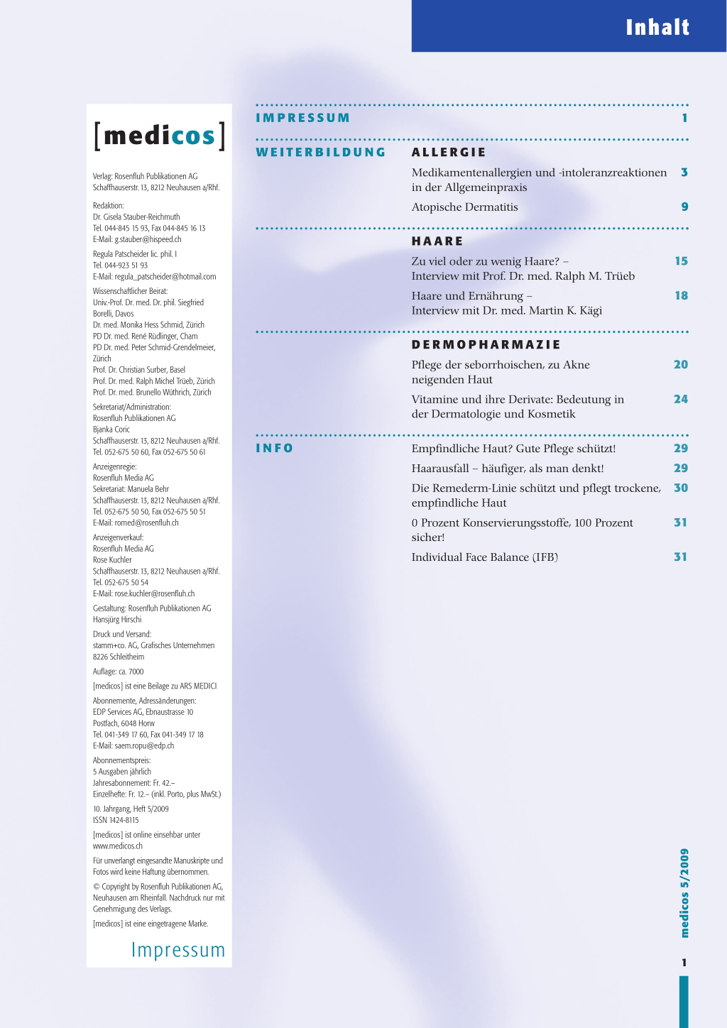 Wissenschaftlicher Beirat: Univ.-Prof. Dr. med. Dr. phil. Siegfried Borelli, Davos Dr. med. Monika Hess Schmid, Zürich PD Dr. med. René Rüdlinger, Cham PD Dr. med. Peter Schmid-Grendelmeier, Zürich Prof. Dr. Christian Surber, Basel Prof. Dr. med. Ralph Michel Trüeb, Zürich Prof. Dr. med. Brunello Wüthrich, Zürich