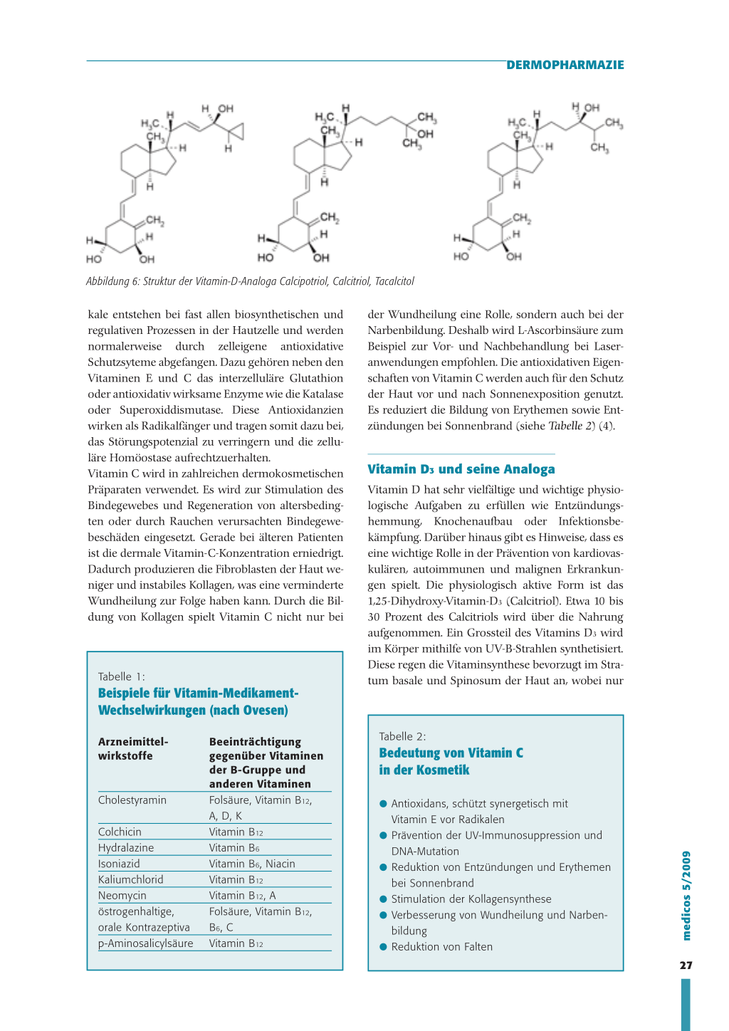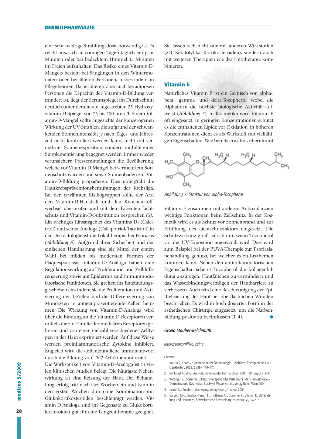 1. Krauss J., Knorr V.: Vitamine in der Dermatologie – etablierte Therapien bei Hautkrankheiten, 2009; 2 (38): 140–147.