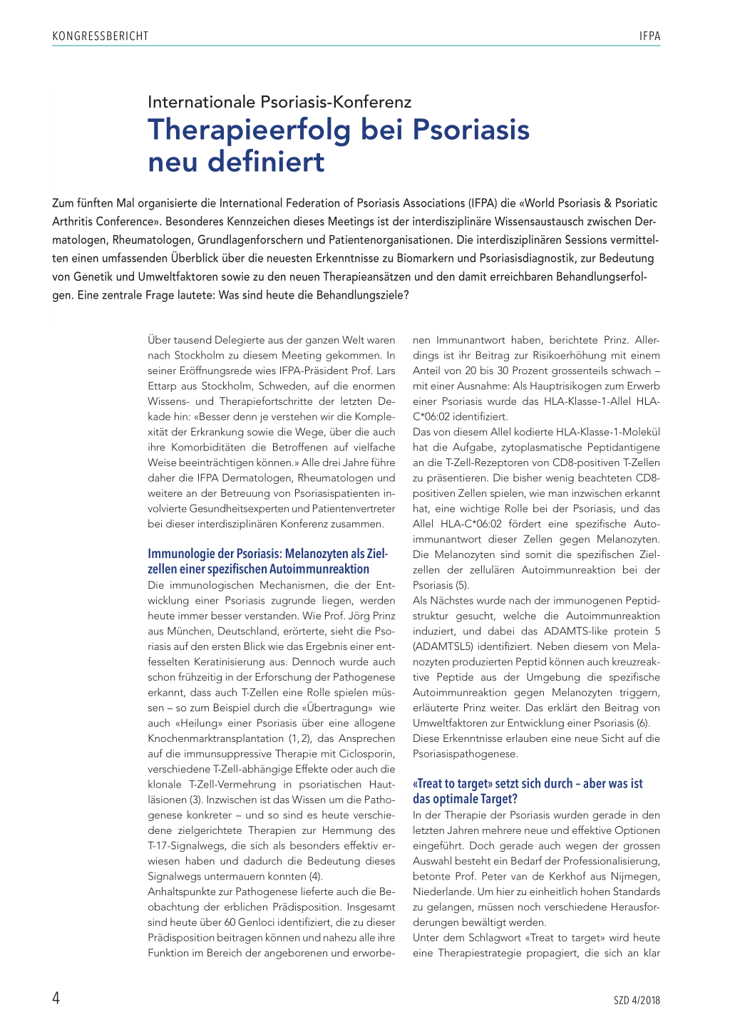 genesis and treatment of psoriasis. J Eur Acad Dermatol Venereol 2017; 31(10): 1616–1626. 5. Arakawa AK et al.: Melanocyte antigen triggers autoimmunity in human psoriasis. J Exp Med 2015 ; 212(13) : 2203–2212. 6. Sewell AK et al.: Why must T cells be cross-reactive? Nat Rev Immunol 2012; 12(9): 669–677. 7. Mrowietz U et al.: Definition of treatment goals for moderate to severe psoriasis: a European consensus. Arch Dermatol Res 2011; 303(1): 1–10.