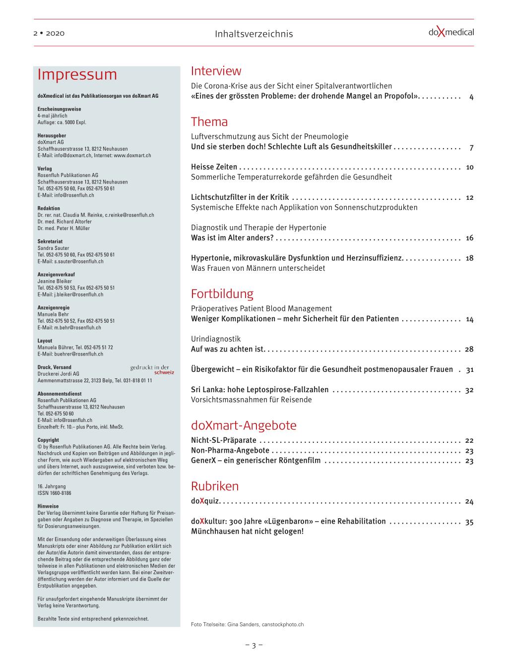 Die Corona-Krise aus der Sicht einer Spitalverantwortlichen «Eines der grössten Probleme: der drohende Mangel an Propofol». . . . . . . . . . . 4