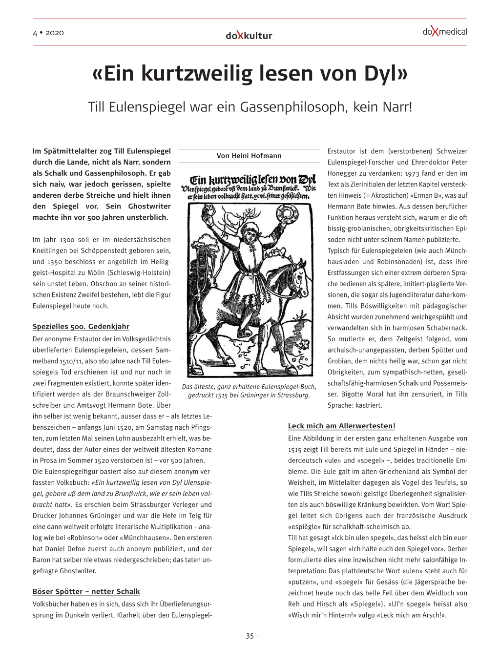 Erstautor ist dem (verstorbenen) Schweizer Eulenspiegel-Forscher und Ehrendoktor Peter
